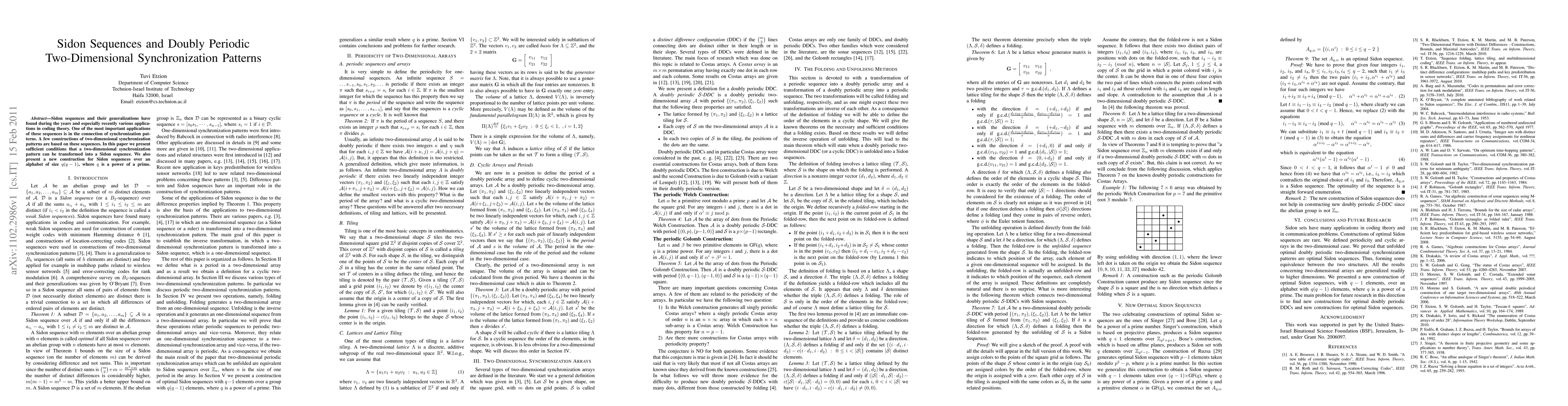This paper explores the transformation of two-dimensional synchronization patterns into Sidon sequences, providing sufficient conditions for such transformations. It also introduces a novel construction method for Sidon sequences over an alphabet of size q(q-1), where q is a power of a prime.