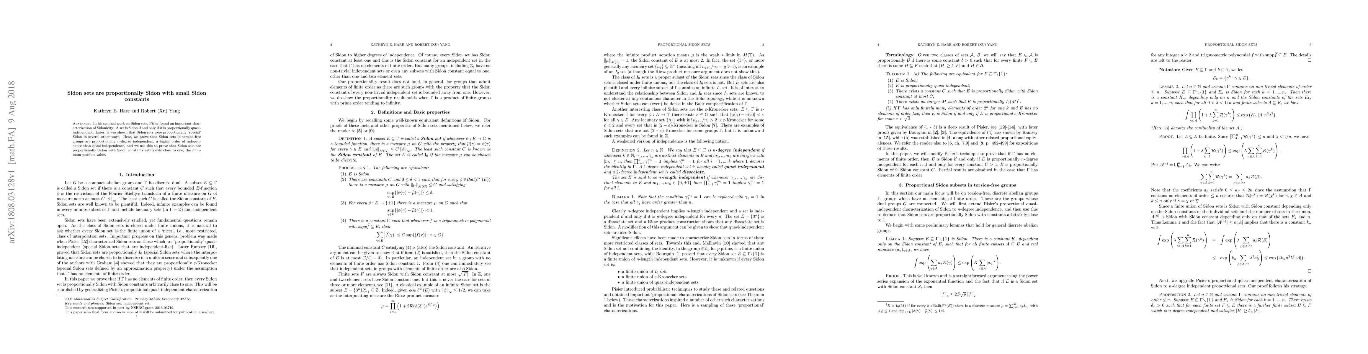 In his seminal work on Sidon sets, Pisier found an important characterization of Sidonicity: A set is Sidon if and only if it is proportionally quasi-independent. Later, it was shown that Sidon sets were proportionally `special' Sidon in several other ways. Here, we prove that Sidon sets in torsion-free groups are proportionally $n$-degree independent, a higher order of independence than quasi-independence, and we use this to prove that Sidon sets are proportionally Sidon with Sidon constants arbitrarily close to one, the minimum possible value.