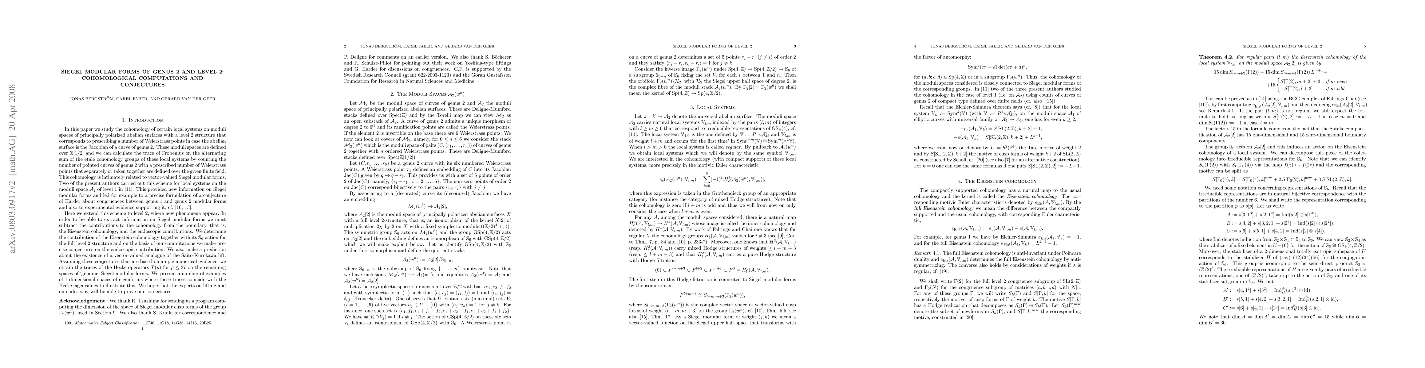 This paper investigates the cohomology of local systems on moduli spaces of principally polarized abelian surfaces with level 2 structures, revealing a connection between this cohomology and vector-valued Siegel modular forms. The authors compute the contribution of Eisenstein cohomology and propose conjectures regarding the endoscopic contribution and the existence of a vector-valued Saito-Kurokawa lift, supported by numerical evidence and traces of Hecke operators.