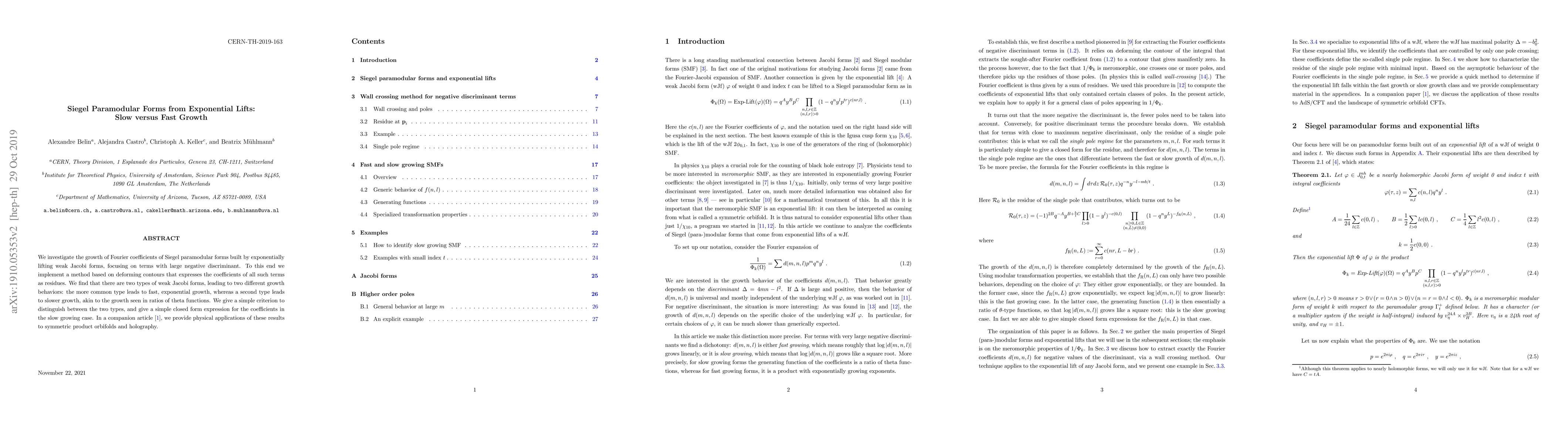 We investigate the growth of Fourier coefficients of Siegel paramodular forms built by exponentially lifting weak Jacobi forms, focusing on terms with large negative discriminant. To this end we implement a method based on deforming contours that expresses the coefficients of all such terms as residues. We find that there are two types of weak Jacobi forms, leading to two different growth behaviors: the more common type leads to fast, exponential growth, whereas a second type leads to slower growth, akin to the growth seen in ratios of theta functions. We give a simple criterion to distinguish between the two types, and give a simple closed form expression for the coefficients in the slow growing case. In a companion article [1], we provide physical applications of these results to symmetric product orbifolds and holography.