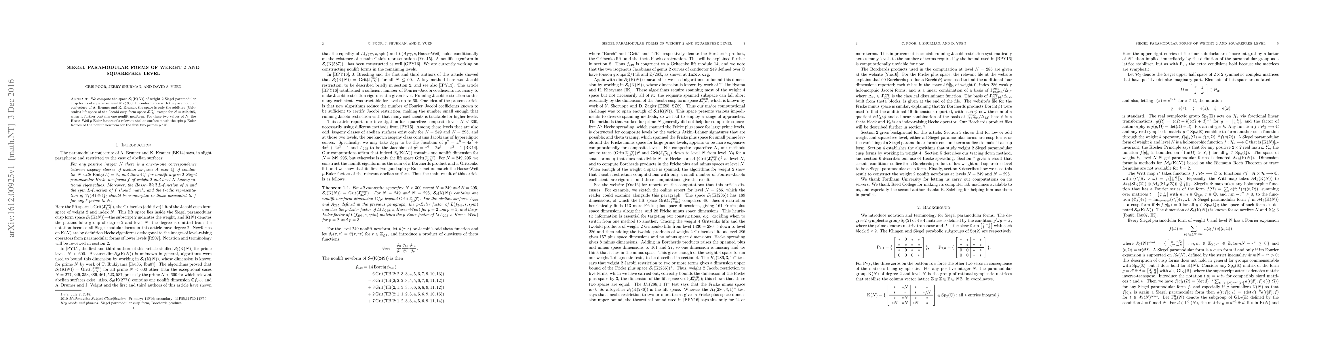 This paper calculates the space $S_2(K(N))$ of weight 2 Siegel paramodular cusp forms for squarefree levels $N < 300$, confirming the paramodular conjecture by showing it aligns with the additive lift space of Jacobi cusp forms except for $N=249,295$, where it includes an additional nonlift newform. The Hasse-Weil $p$-Euler factors for these exceptional cases match the spin $p$-Euler factors of the nonlift newform for primes $p\nmid N$.