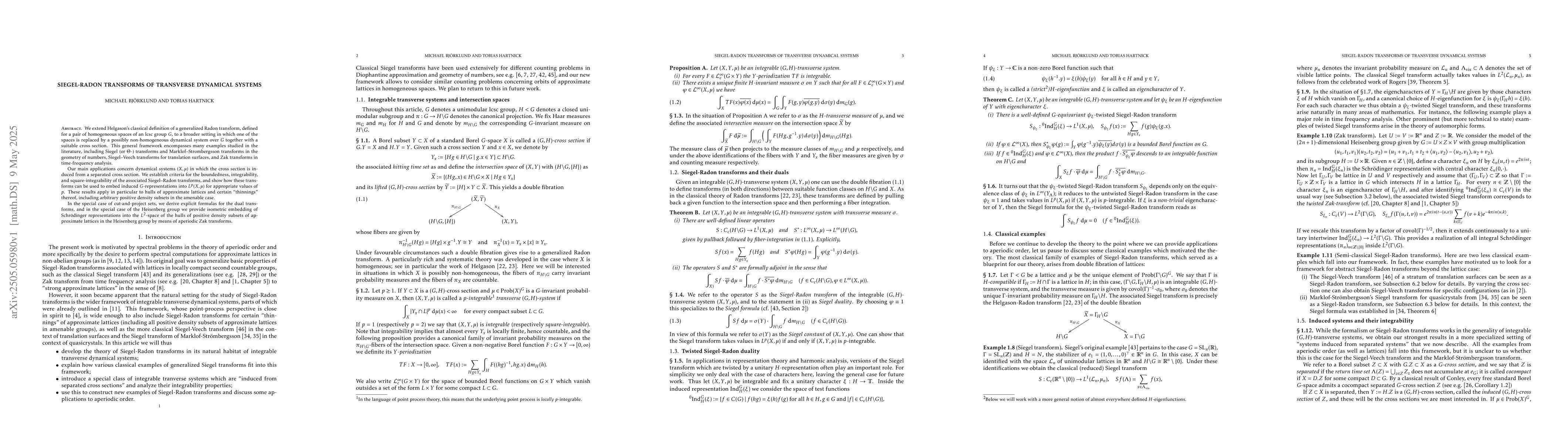 The paper extends Helgason's generalized Radon transform definition to include non-homogeneous dynamical systems over lcsc group G, utilizing suitable cross sections, encompassing various transforms like Siegel, Marklof-Strömbergsson, Siegel-SVeech, and Zak transforms.