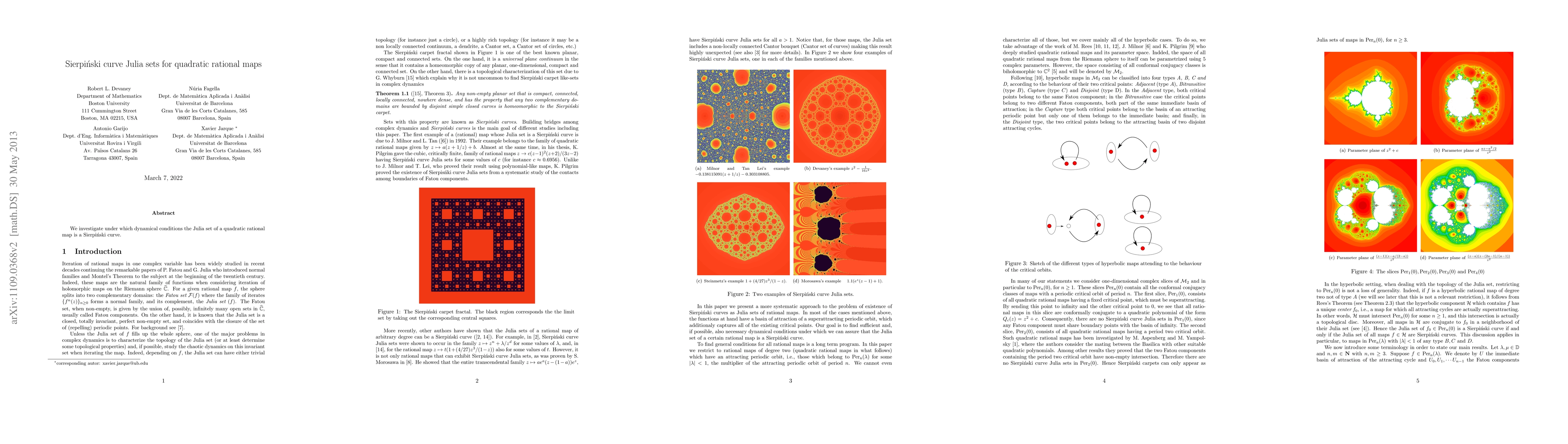 We investigate under which dynamical conditions the Julia set of a quadratic rational map is a Sierpi\'{n}ski curve