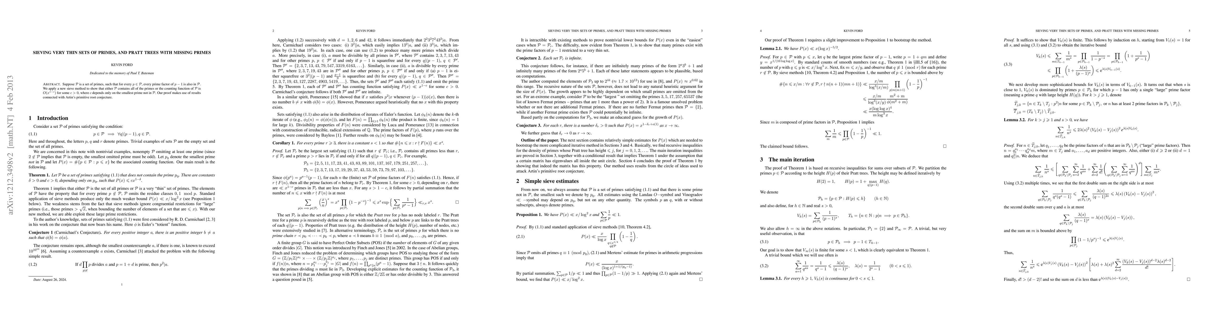 Suppose P is a set of primes, such that for every p in P, every prime factor of p-1 is also in P. If P does not contain all primes, we apply a new sieve method to show that the counting function of P is O(x^{1-c}) for some c>0, where c depends only on the smallest prime not in P. Our proof makes use of results connected with Artin's primitive root conjecture.