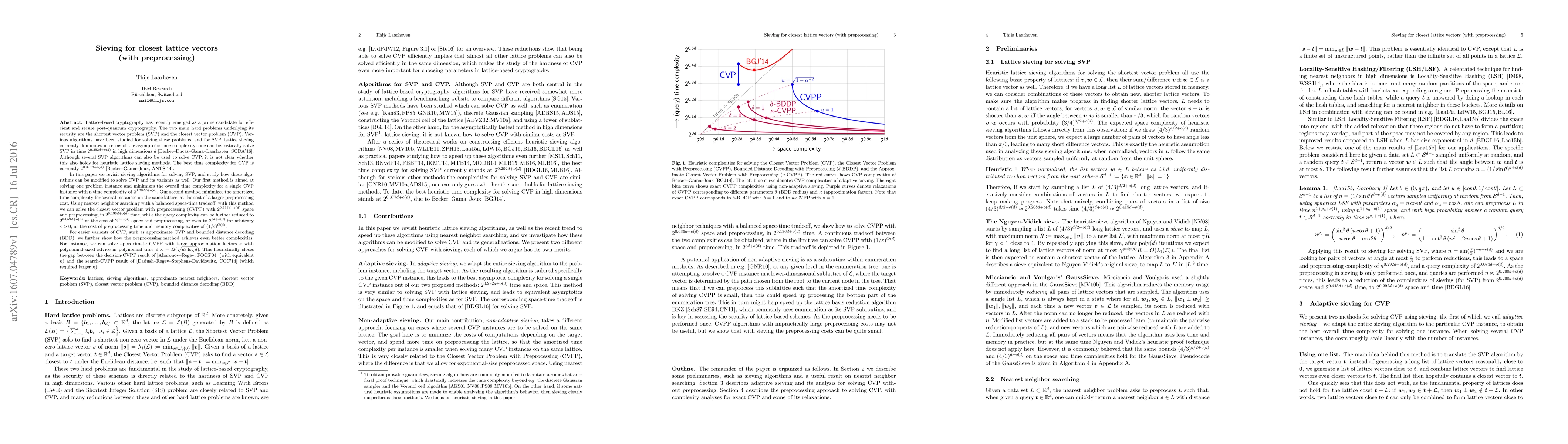 This paper explores lattice sieving algorithms for solving the shortest vector problem (SVP) and its variants, including the closest vector problem (CVP). It proposes two methods: one for solving a single CVP instance with a time complexity of $2^{0.292d}$, and another for multiple instances with preprocessing, achieving $2^{0.136d}$ query time at the cost of $2^{0.636d}$ space and preprocessing.
