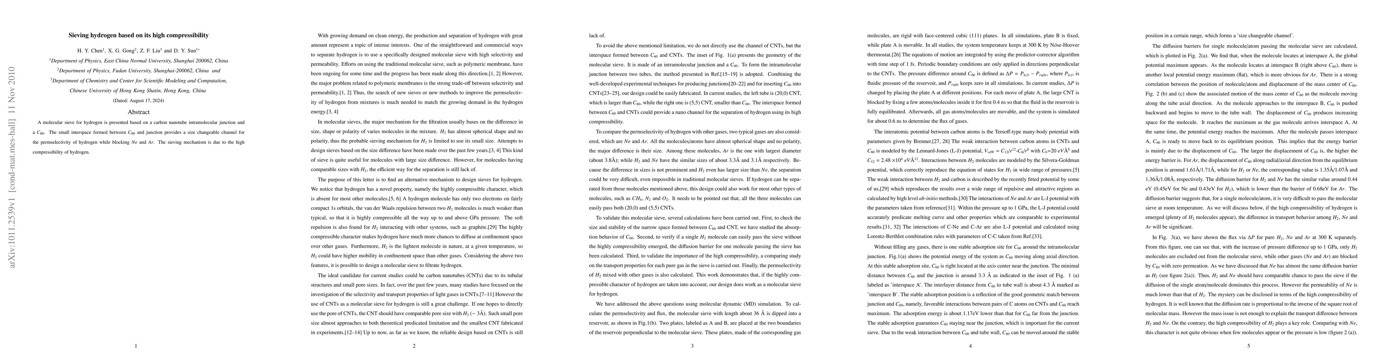 A molecular sieve for hydrogen is presented based on a carbon nanotube intramolecular junction and a $C_{60}$. The small interspace formed between $C_{60}$ and junction provides a size changeable channel for the permselectivity of hydrogen while blocking $Ne$ and $Ar$. The sieving mechanism is due to the high compressibility of hydrogen.