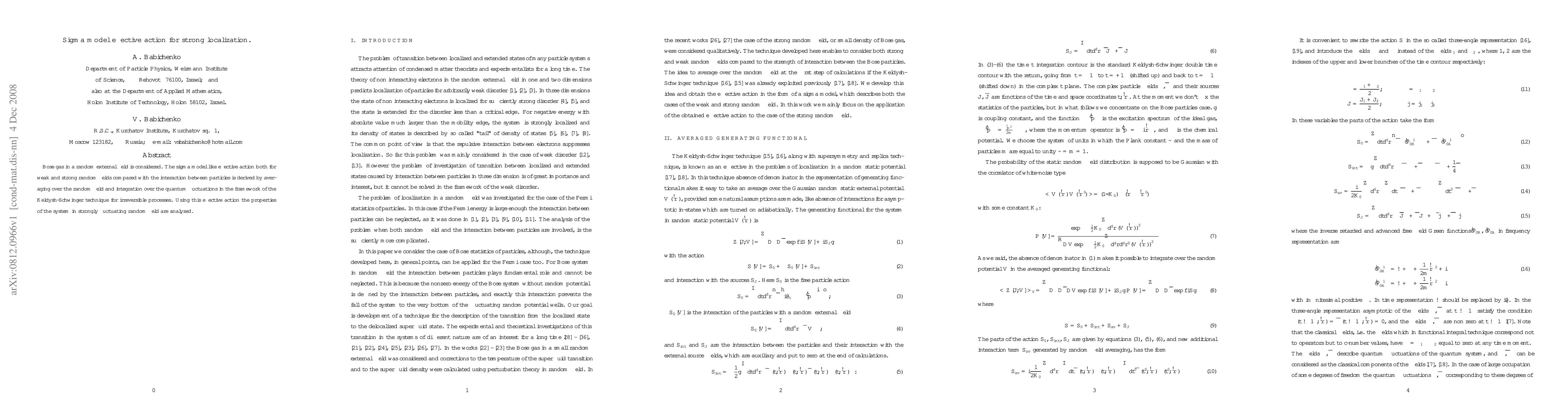 Bose gas in a random external field is considered. The sigma model like effective action both for weak and strong random fields compared with the interaction between particles is derived by averaging over the random field and integration over the quantum fluctuations in the framework of the Keldysh-Schwinger technique for irreversible processes. Using this effective action the properties of the system in strongly fluctuating random field are analyzed.
