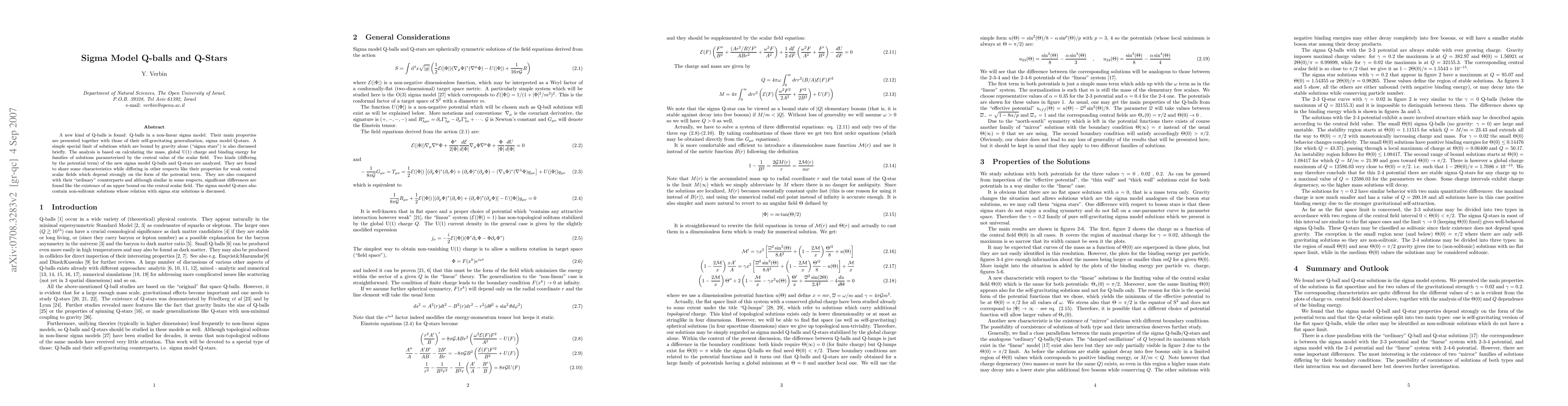 This paper introduces sigma model Q-balls and Q-stars, exploring their mass, charge, and binding energy, and comparing them to ordinary Q-balls. It finds an upper bound on the central scalar field for sigma model Q-stars and discusses non-solitonic solutions within the sigma model Q-stars.