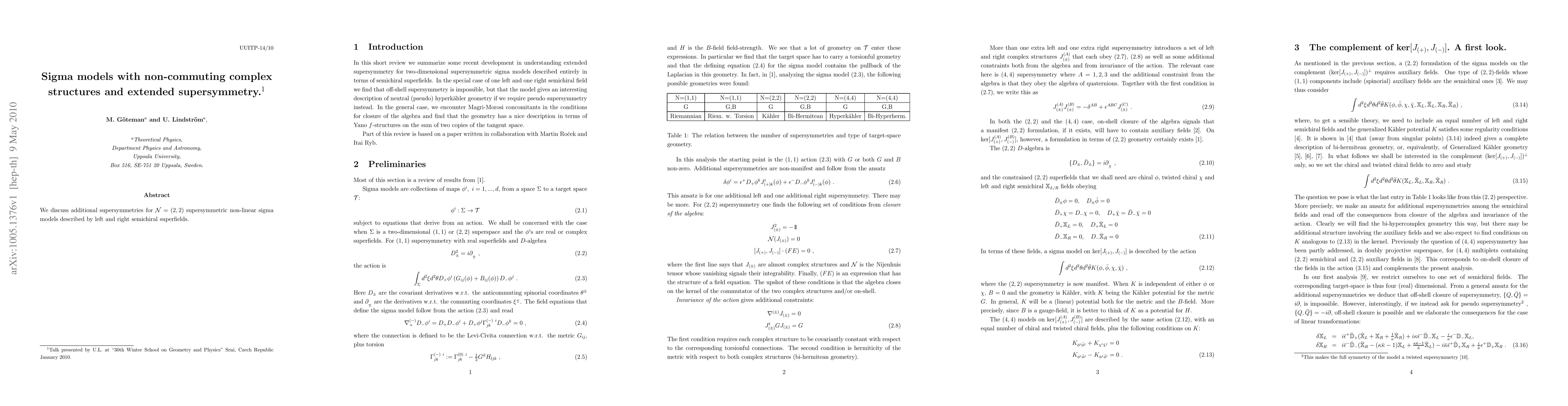 Summary: This paper explores extended supersymmetry in N = (2, 2) sigma models using left and right semichiral superfields, focusing on the presence of non-commuting complex structures. It investigates the implications for additional supersymmetries in these models.