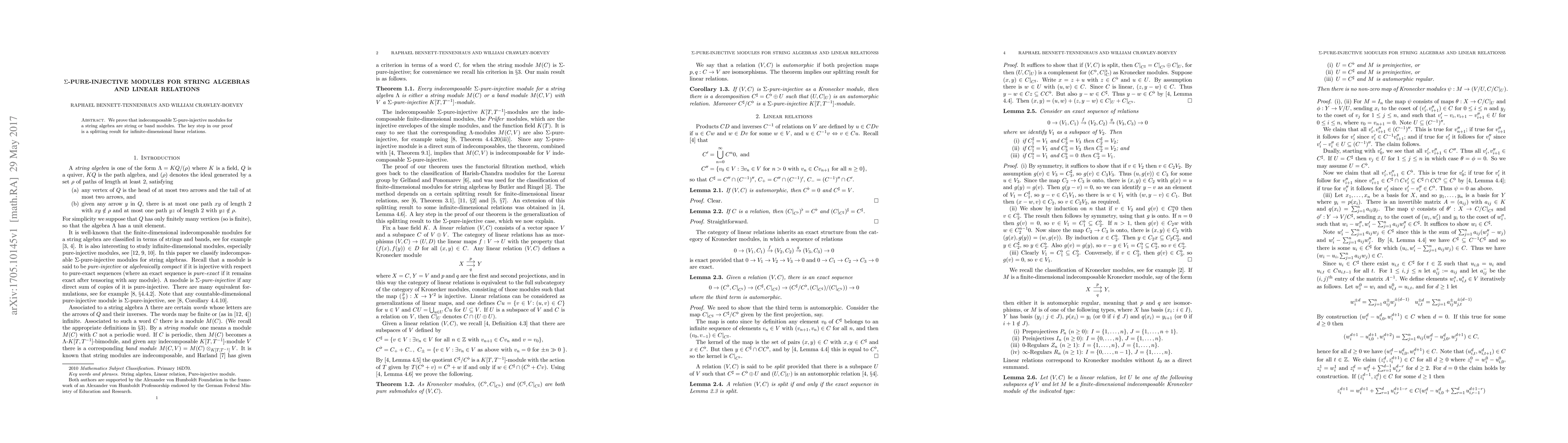 Summary: This paper demonstrates that indecomposable $\Sigma$-pure-injective modules for string algebras are either string or band modules, utilizing a crucial splitting result for infinite-dimensional linear relations in the proof.