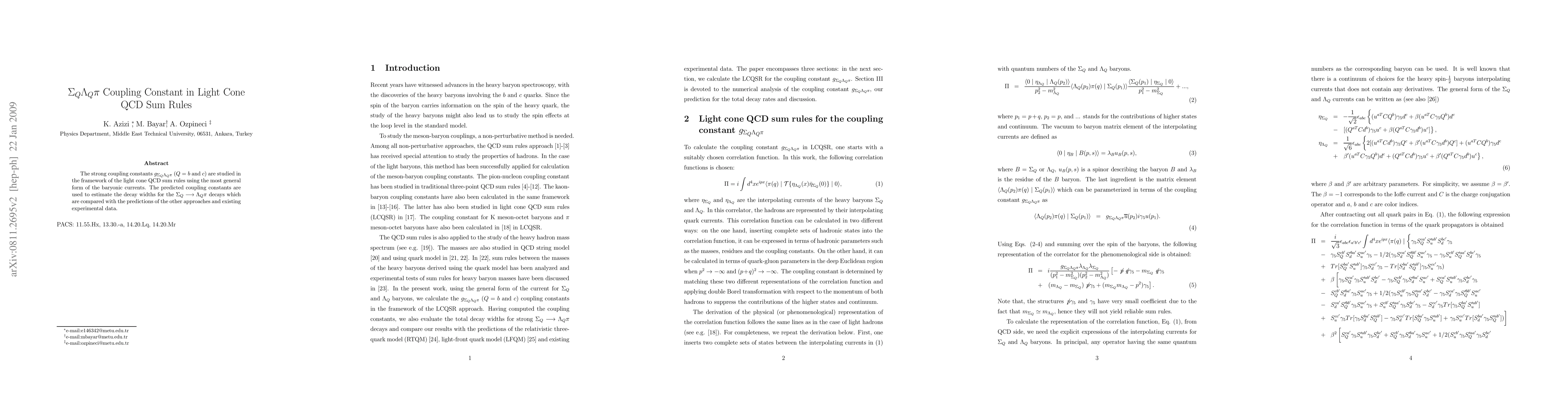 The strong coupling constants $g_{{\Sigma_{Q}\Lambda_{Q}\pi}}$ ($Q=b$ and $c$) are studied in the framework of the light cone QCD sum rules using the most general form of the baryonic currents. The predicted coupling constants are used to estimate the decay widths for the $\Sigma_{Q}\longrightarrow\Lambda_{Q}\pi$ decays which are compared with the predictions of the other approaches and existing experimental data.