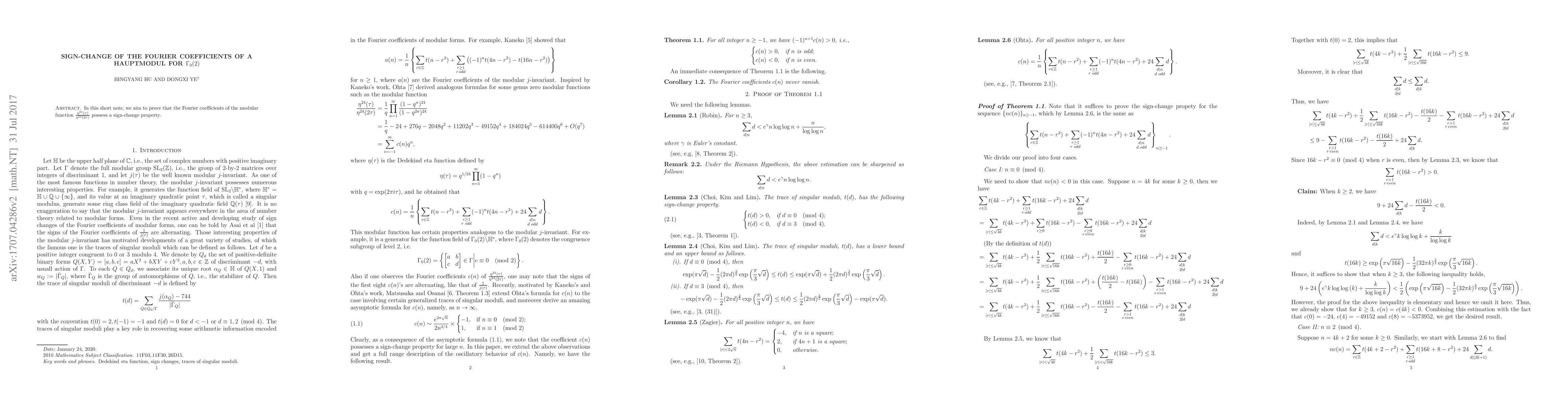In this short note, we aim to prove that the Fourier coefficients of the modular function $ \frac{\eta^{24}(\tau)}{\eta^{24}(2\tau)} $ possess a sign-change property.