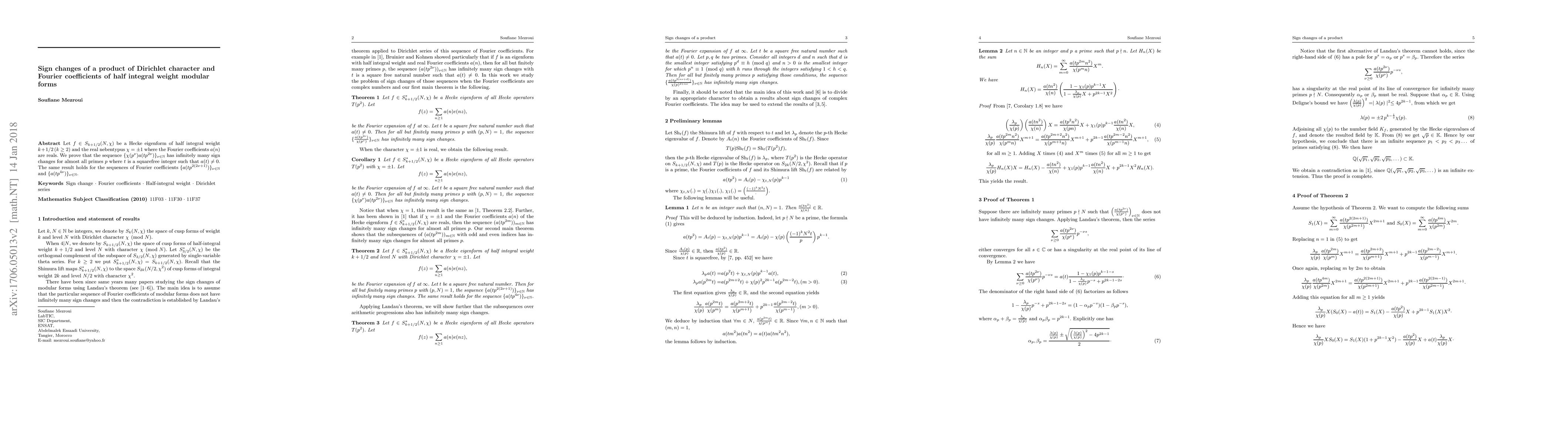 Let $f\in S_{k+1/2}(N,\chi)$ be a Hecke eigenform of half integral weight $k+1/2\,(k\geq 2)$ and the real nebentypus $\chi=\pm 1$ where the Fourier coefficients $a(n)$ are reals. We prove that the sequence $\{\chi(p^{\nu})a(tp^{2\nu})\}_{\nu\in\N}$ has infinitely many sign changes for almost all primes $p$ where $t$ is a squarefree integer such that $a(t)\neq 0$. The same result holds for the sequences of Fourier coefficients $\{a(tp^{2(2\nu+1)})\}_{\nu\in\N}$ and $\{a(tp^{4\nu})\}_{\nu\in\N}$.