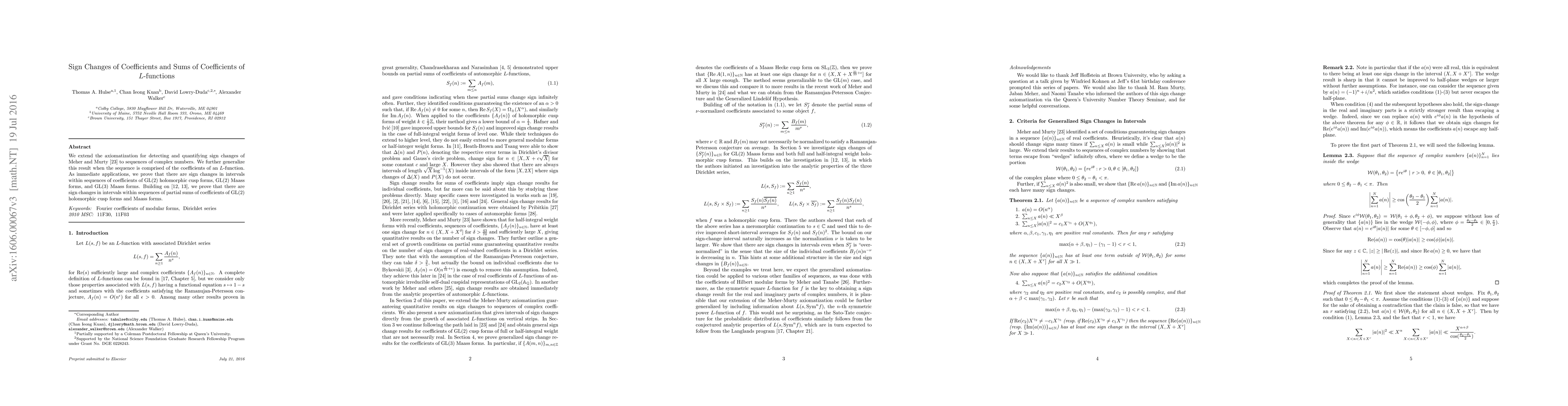 This paper extends the axiomatization of sign changes in sequences of complex numbers to the coefficients of L-functions, proving sign changes in sequences from GL(2) holomorphic cusp forms, GL(2) Maass forms, and GL(3) Maass forms, and extending previous results on partial sums of coefficients from these forms.