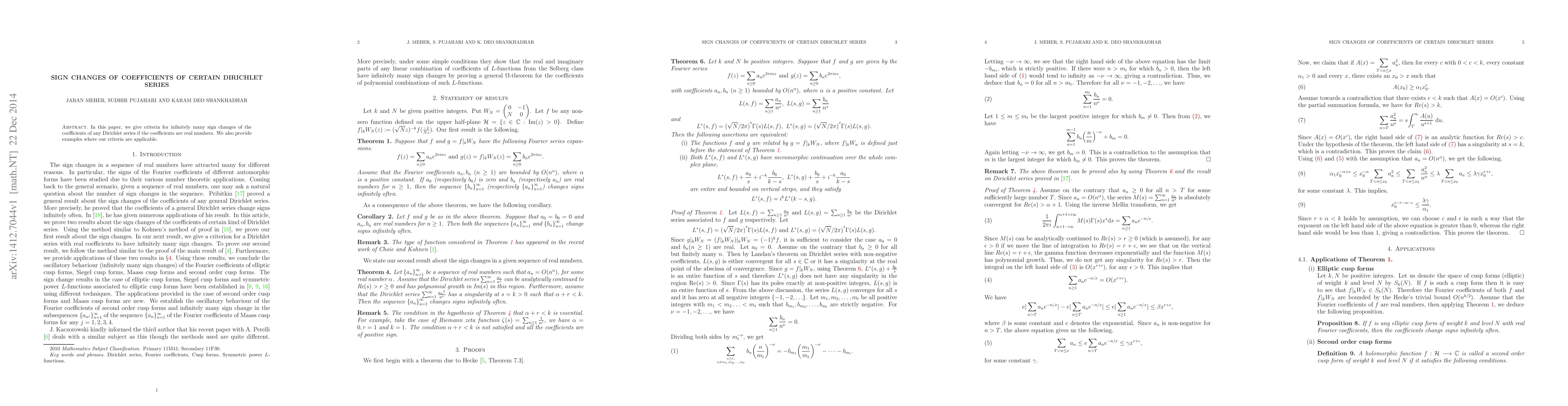 This paper establishes criteria for the occurrence of infinitely many sign changes in the coefficients of any Dirichlet series with real coefficients, and provides illustrative examples demonstrating the applicability of these criteria.