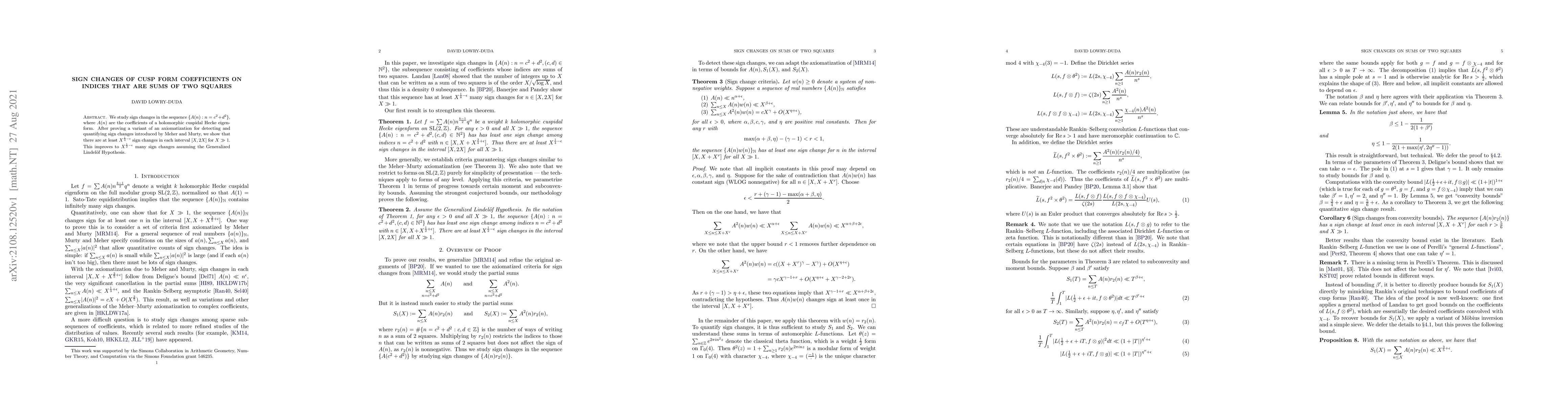 This paper investigates sign changes in the sequence of cusp form coefficients where the indices are sums of two squares. It establishes a method for detecting and quantifying these sign changes, proving that there are at least $X^{\frac{1}{4} - \epsilon}$ sign changes in intervals $[X, 2X]$ for large $X$, with an improvement to $X^{\frac{1}{2} - \epsilon}$ under the Generalized Lindel\"{o}f Hypothesis.