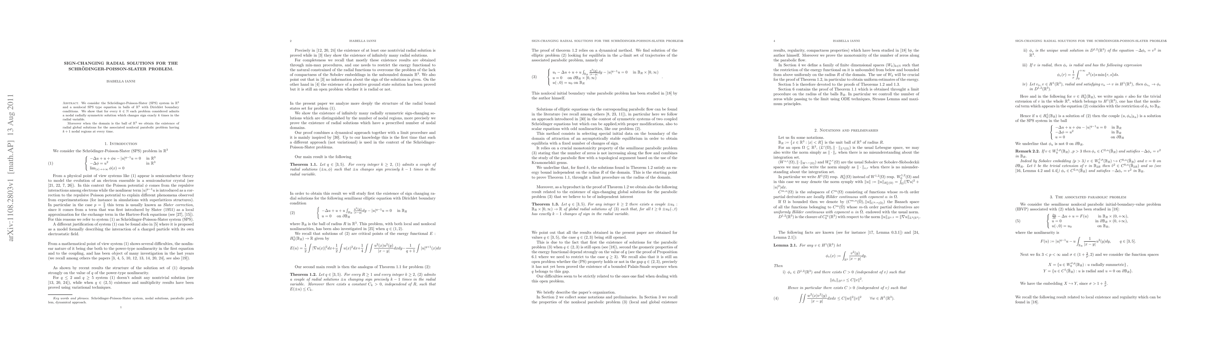 This paper explores the Schrödinger-Poisson-Slater (SPS) system and its nonlocal variant in $\mathbb{R}^3$, proving the existence of nodal radial solutions that change sign exactly $k$ times for any $k\in\mathbb{N}$. Additionally, it demonstrates the emergence of radial global solutions in parabolic nonlocal problems with $k+1$ nodal regions over time.
