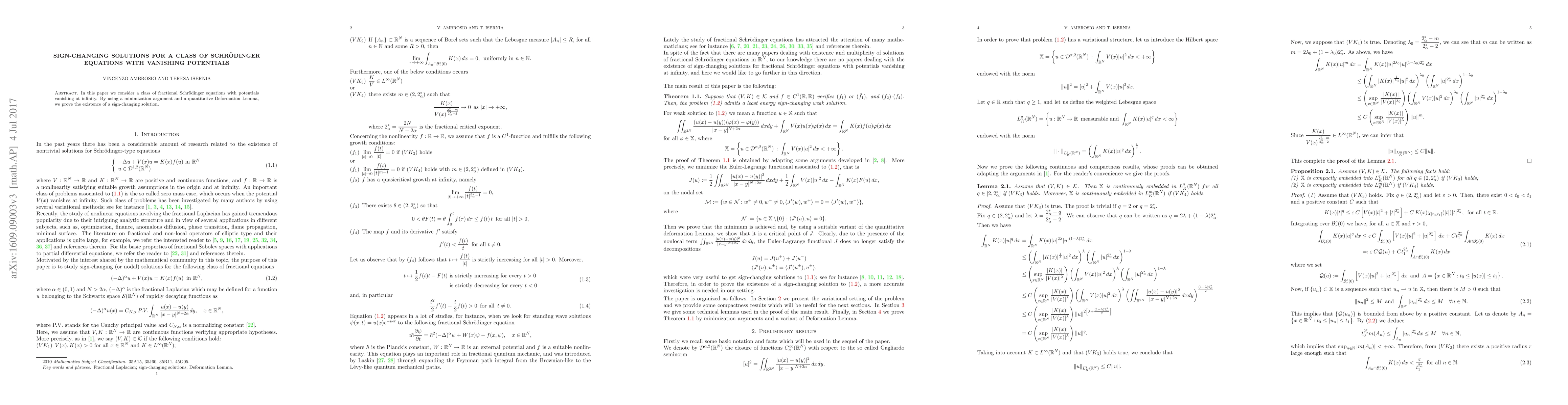 This paper proves the existence of sign-changing solutions for fractional Schrödinger equations where the potential vanishes at infinity, utilizing a minimization argument and a quantitative deformation Lemma. The results demonstrate the potential for complex, non-trivial behavior in such systems.