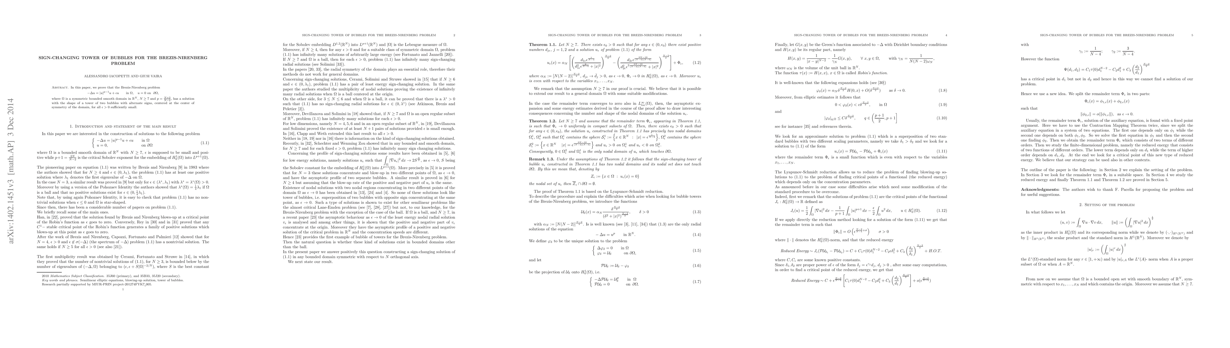 In this paper, we prove that the Brezis-Nirenberg problem -\Delta u = |u|^{p-1}u+\epsilon u in \Omega; u=0 on \partial \Omega where \Omega is a symmetric bounded smooth domain in R^N, N\geq 7 and p = (N+2)/(N-2), has a solution with the shape of a tower of two bubbles with alternate signs, centered at the center of symmetry of the domain, for all \epsilon > 0 sufficiently small.