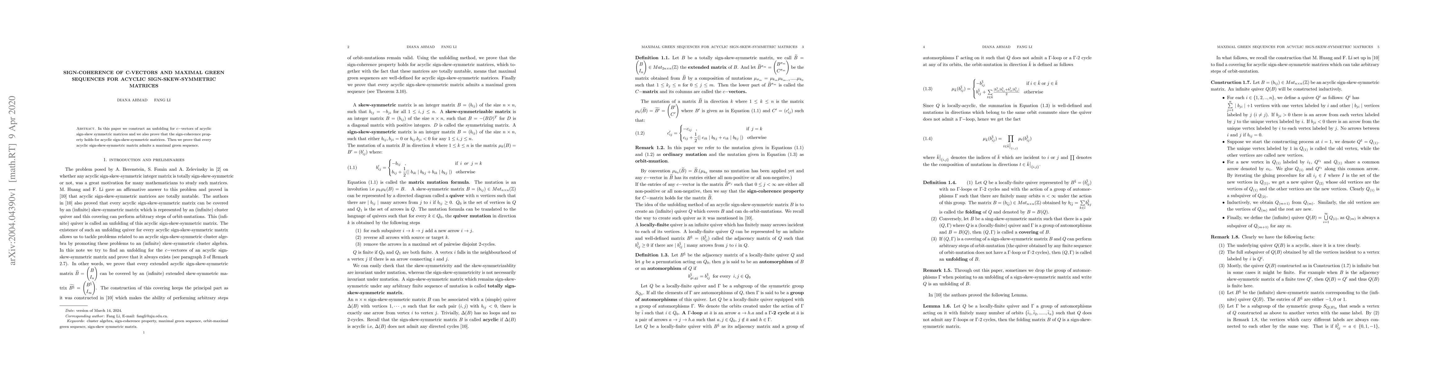 Summary: This paper constructs an unfolding for $c$-vectors of acyclic sign-skew-symmetric matrices and proves the sign-coherence property for these matrices, also demonstrating that they have maximal green sequences.