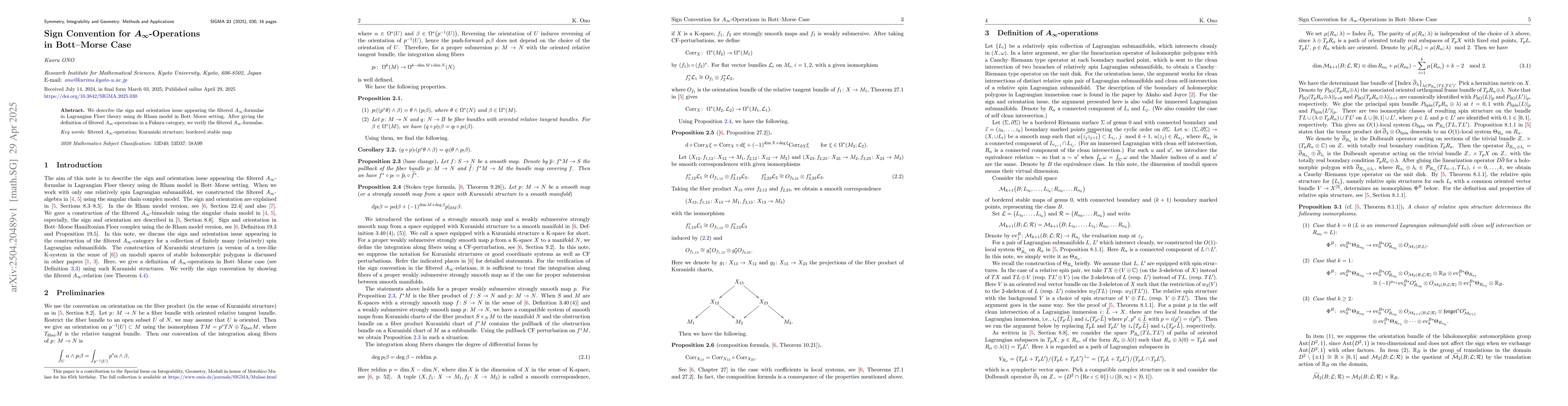 Researchers investigated sign conventions for filtered $A_{ty}$-operations in Bott-Morse case, finding issues with formulae in Lagrangian Floer theory using de Rham model.