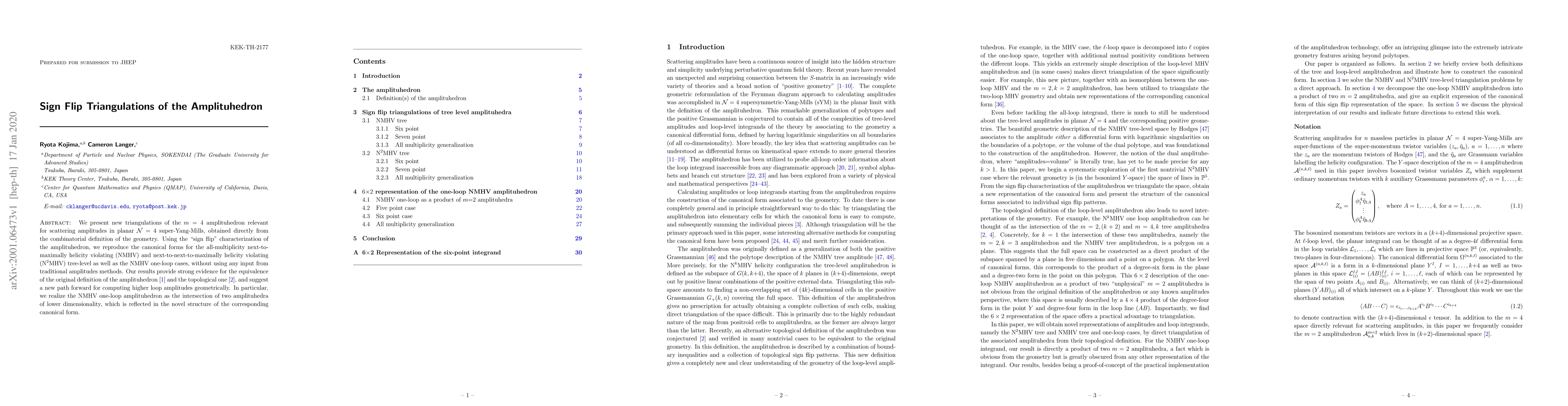 We present new triangulations of the $m=4$ amplituhedron relevant for scattering amplitudes in planar $\mathcal{N}=4$ super-Yang-Mills, obtained directly from the combinatorial definition of the geometry. Using the "sign flip" characterization of the amplituhedron, we reproduce the canonical forms for the all-multiplicity next-to-maximally helicity violating (NMHV) and next-to-next-to-maximally helicity violating ($\text{N}^2$MHV) tree-level as well as the NMHV one-loop cases, without using any input from traditional amplitudes methods. Our results provide strong evidence for the equivalence of the original definition of the amplituhedron \cite{Arkani-Hamed:2013jha} and the topological one \cite{Arkani-Hamed:2017vfh}, and suggest a new path forward for computing higher loop amplitudes geometrically. In particular, we realize the NMHV one-loop amplituhedron as the intersection of two amplituhedra of lower dimensionality, which is reflected in the novel structure of the corresponding canonical form.