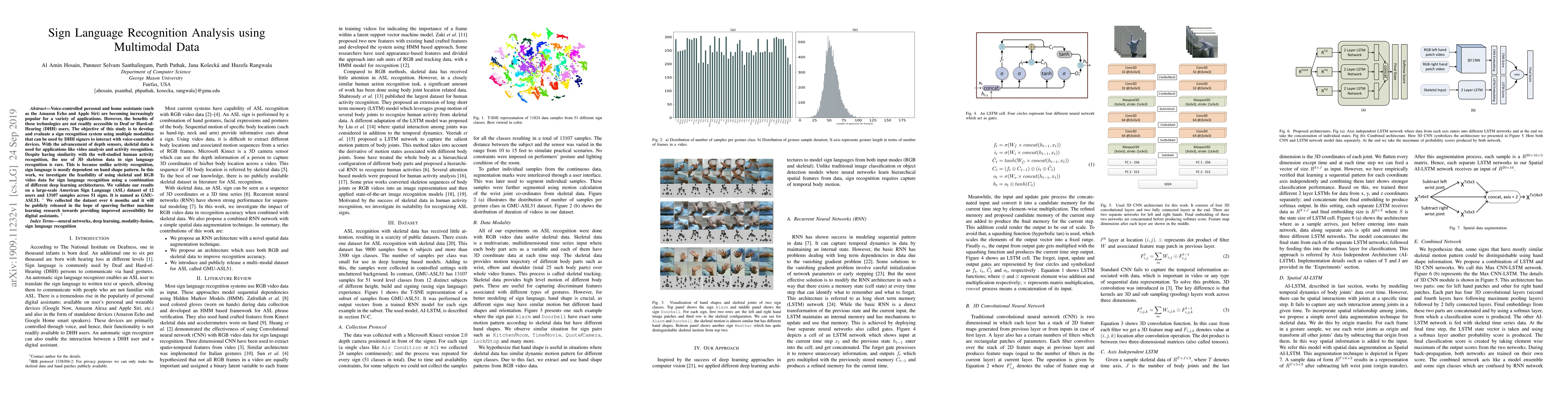 The study develops and evaluates a sign language recognition system using multimodal data, specifically skeletal and RGB video data, for Deaf or Hard-of-Hearing (DHH) users to interact with voice-controlled devices. It employs deep learning architectures such as Recurrent Neural Networks (RNN), Long Short-Term Memory (LSTM), and 3D Convolutional Neural Networks (3D-CNN) on a large-scale American Sign Language (ASL) dataset called GMUASL51.
