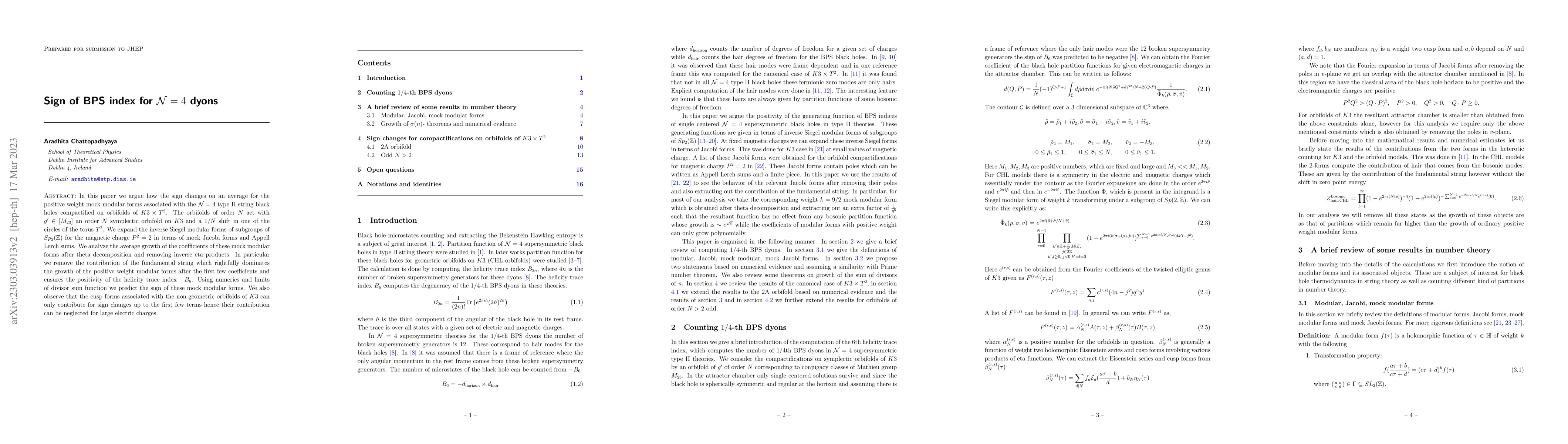 This paper investigates the sign changes in the average of positive weight mock modular forms linked to ${\cal N}=4$ dyons in compactified string black holes, specifically on orbifolds of $K3\times T^2$. It predicts the sign of these forms through analysis of their coefficients and the removal of dominant contributions, ultimately ensuring the positivity of the helicity trace index.