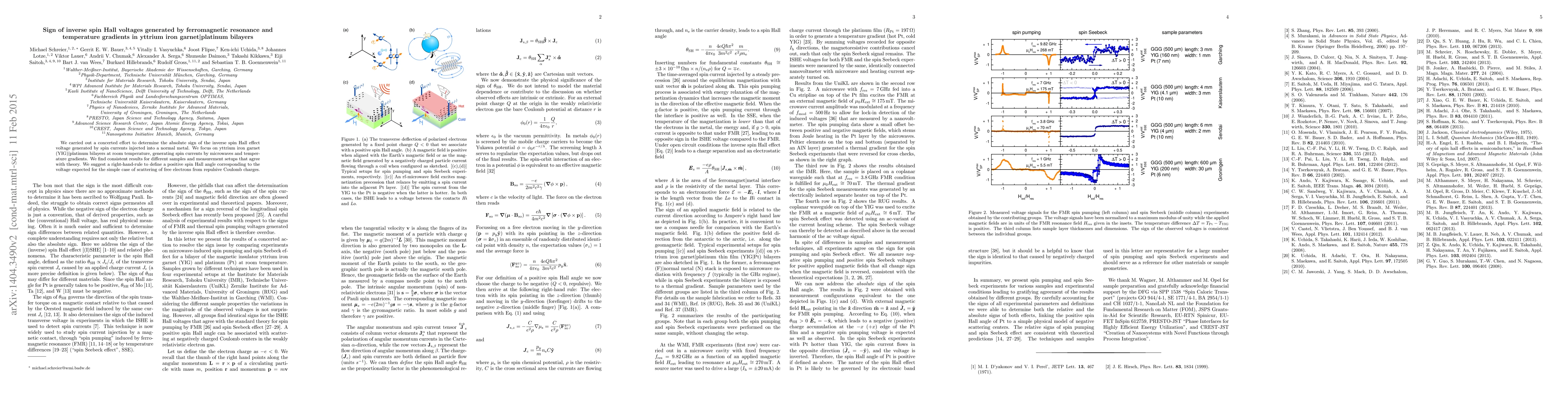 Researchers investigated spin Hall voltages in yttrium iron garnet/platinum bilayers using microwaves and temperature gradients, finding consistent results that agree with theory and proposing a right-hand-rule to define the sign of the inverse spin Hall effect.