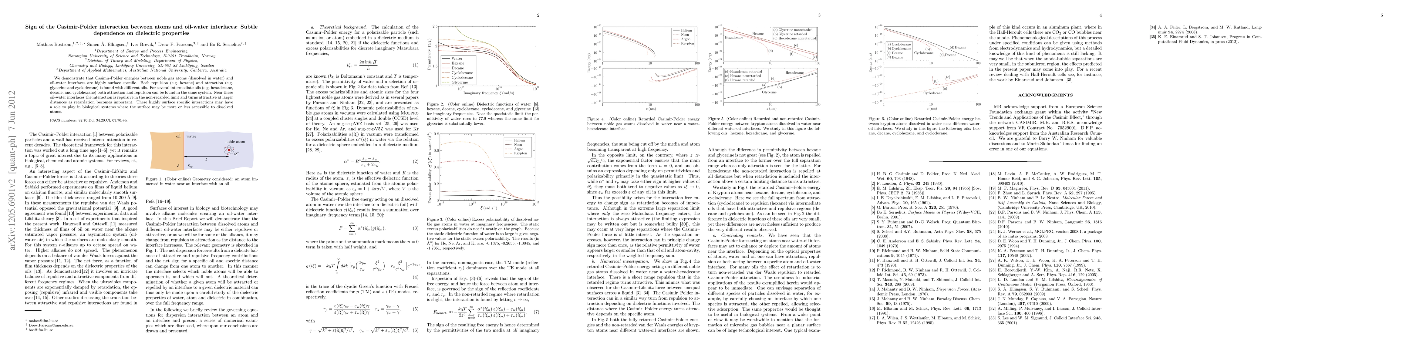 Researchers found that Casimir-Polder interactions between noble gas atoms and oil-water interfaces vary greatly depending on the surface properties of the oils, leading to both attractive and repulsive forces. These highly surface-specific interactions may play a role in biological systems where atoms interact with surfaces.
