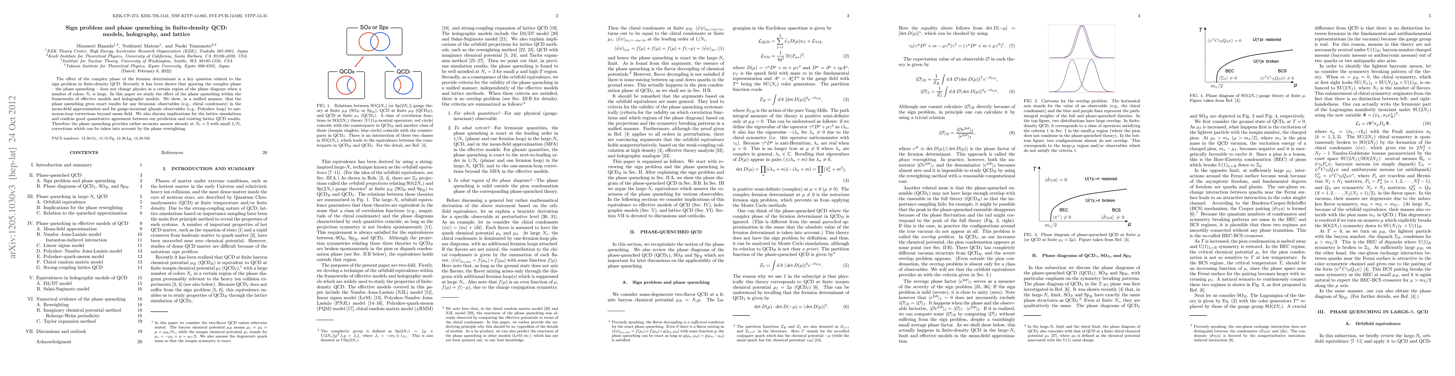 The effect of the complex phase of the fermion determinant is a key question related to the sign problem in finite-density QCD. Recently it has been shown that ignoring the complex phase -- the phase quenching -- does not change physics in a certain region of the phase diagram when a number of colors N_c is large. In this paper we study the effect of the phase quenching within the frameworks of effective models and holographic models. We show, in a unified manner, that the phase quenching gives exact results for any fermionic observables (e.g., chiral condensate) in the mean-field approximation and for gauge-invariant gluonic observables (e.g., Polyakov loop) to one-meson-loop corrections beyond mean field. We also discuss implications for the lattice simulations and confirm good quantitative agreement between our prediction and existing lattice QCD results. Therefore the phase quenching provides rather accurate answer already at N_c=3 with small 1/N_c corrections which can be taken into account by the phase reweighting.