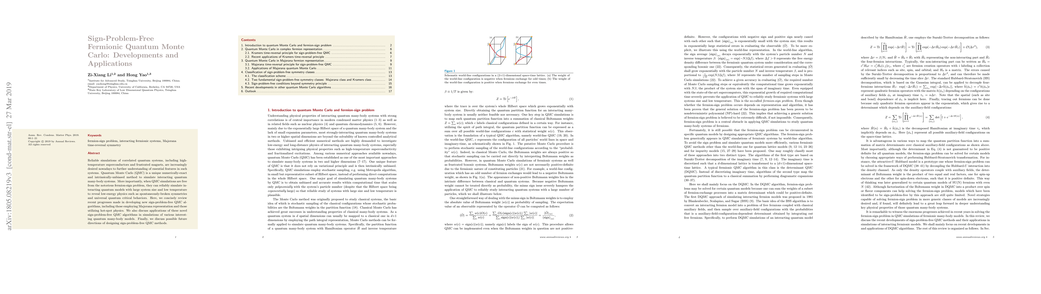 This paper reviews advancements in sign-problem-free Fermionic Quantum Monte Carlo (QMC) methods, focusing on algorithms using Majorana representation and hot-spot physics. It highlights applications in simulating correlated quantum systems and discusses future research directions.