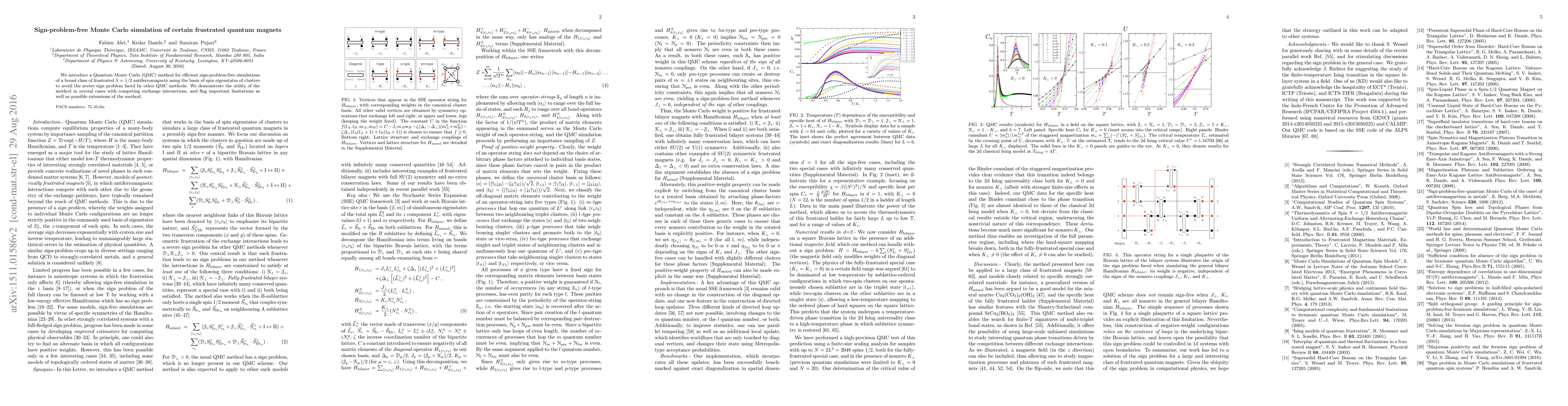 This paper presents a novel Quantum Monte Carlo method for simulating frustrated $S=1/2$ quantum magnets without encountering the sign problem, utilizing total spin eigenstates of spin clusters. The authors discuss the method's limitations and potential for future advancements.