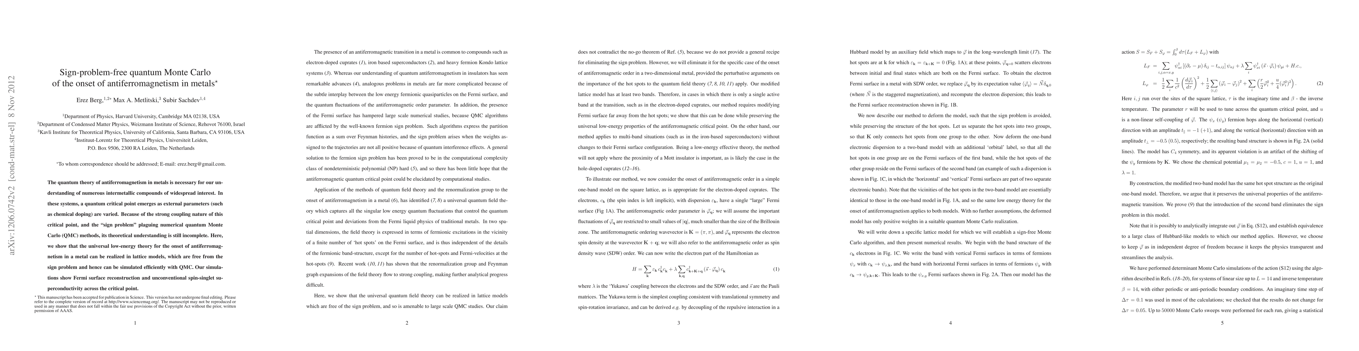 Researchers developed a new method to study the onset of antiferromagnetism in metals without the sign problem, revealing Fermi surface reconstruction and unconventional superconductivity across the critical point.
