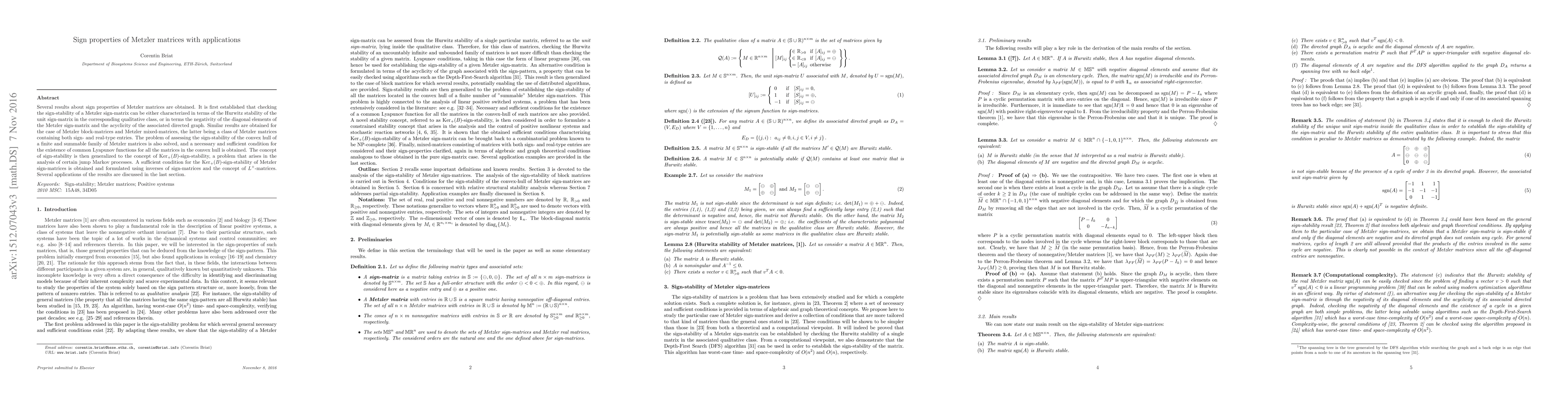 The paper employs a combination of matrix analysis, stability theory, and graph theory to investigate sign properties of Metzler matrices and their extensions, including sign-mixed matrices and block matrices.