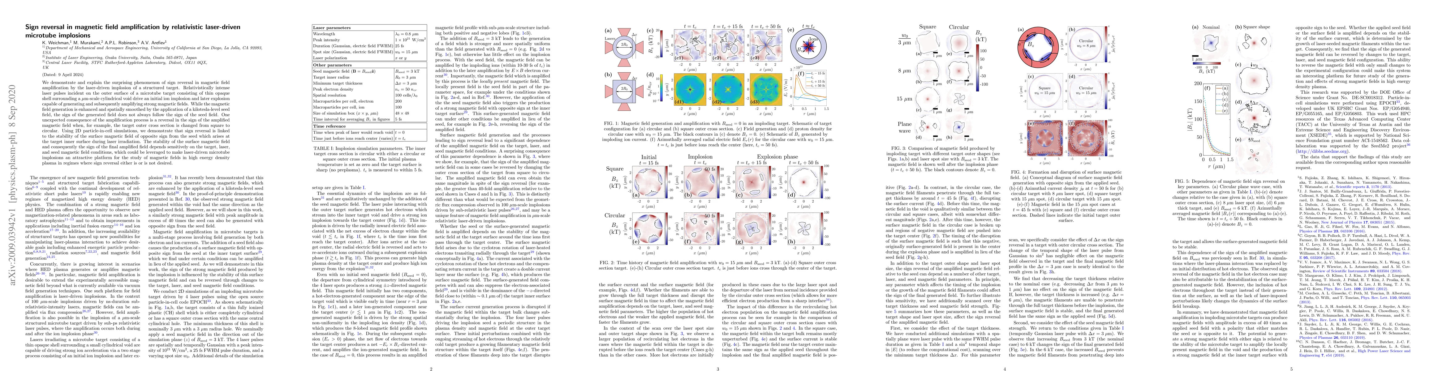 This paper investigates the unexpected sign reversal in magnetic field amplification during relativistic laser-driven implosions of microtube targets. The study reveals that the final amplified magnetic field can reverse its sign compared to the initial seed field, depending on the target geometry and conditions, which can be exploited for controlled magnetic field studies in high energy density plasmas.