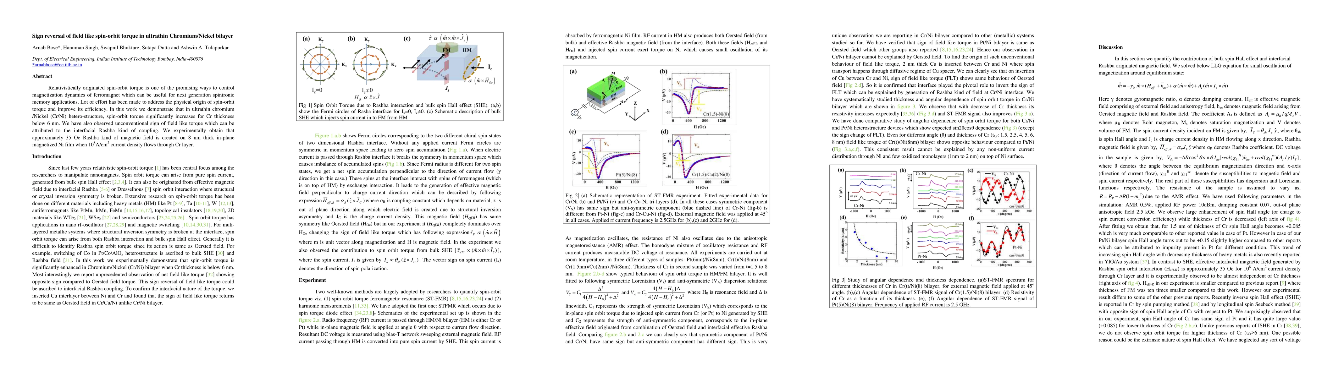 This study reports an unconventional sign reversal of field-like spin-orbit torque in ultrathin Chromium/Nickel bilayers, revealing that when the Cr layer is below 6 nm, the torque significantly increases and opposes the Oersted field-induced torque. The insertion of a 2 nm Cu layer between Cr and Ni eliminates this effect, suggesting an inter-facial Rashba-like interaction as the origin.