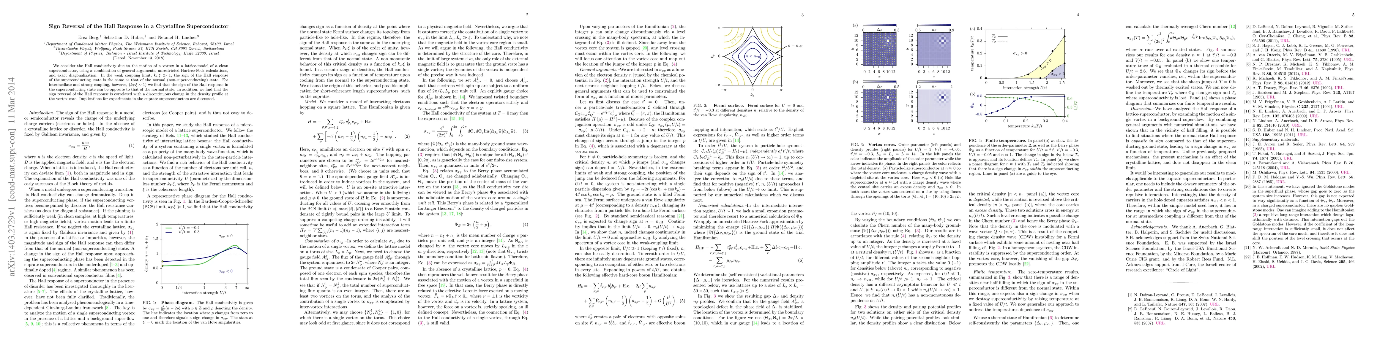 We consider the Hall conductivity due to the motion of a vortex in a lattice-model of a clean superconductor, using a combination of general arguments, unrestricted Hartree-Fock calculations, and exact diagonalization. In the weak coupling limit, $k_F \xi \gg 1$, the sign of the Hall response of the superconducting state is the same as that of the normal (non-superconducting) state. For intermediate and strong coupling, however, ($k_F \xi \sim 1$) we find that the sign of the Hall response in the superconducting state can be opposite to that of the normal state. In addition, we find that the sign reversal of the Hall response is correlated with a discontinuous change in the density profile at the vortex core. Implications for experiments in the cuprate superconductors are discussed.