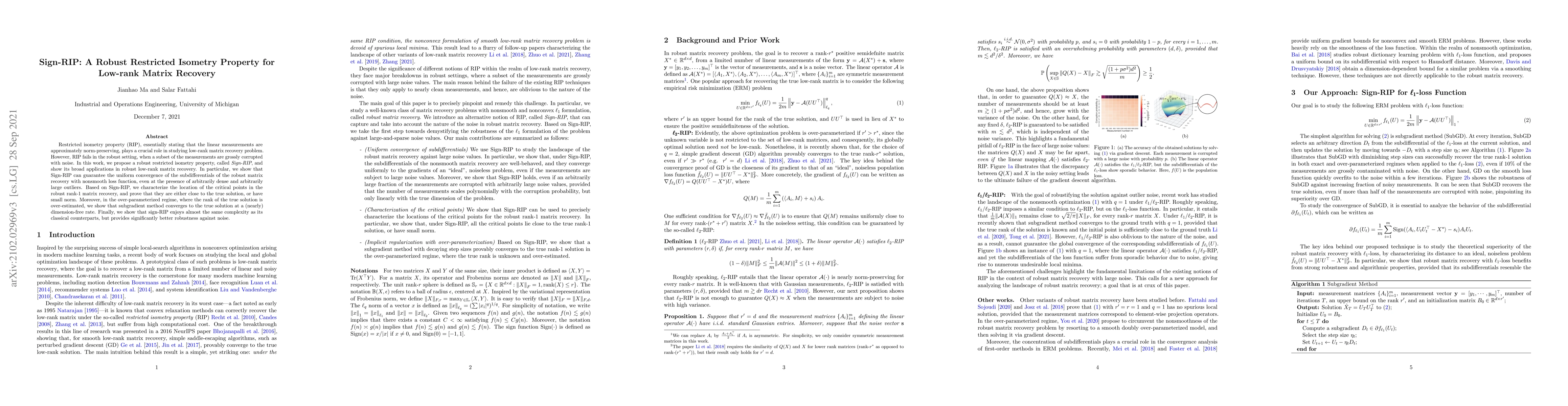 This paper proposes a robust restricted isometry property (Sign-RIP) for low-rank matrix recovery, ensuring uniform convergence of subgradients even with large outliers. It demonstrates that Sign-RIP guarantees convergence to the true solution in over-parameterized settings and maintains comparable complexity while offering superior noise resistance.