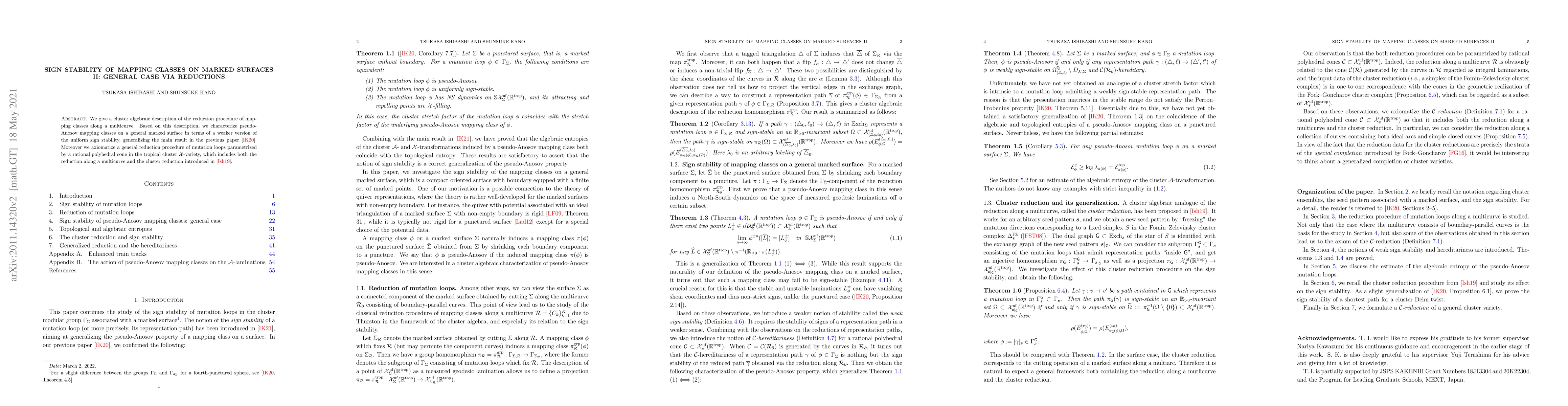 We give a cluster algebraic description of the reduction procedure of mapping classes along a multicurve. Based on this description, we characterize pseudo-Anosov mapping classes on a general marked surface in terms of a weaker version of the uniform sign stability, generalizing the main result in the previous paper [IK20]. Moreover we axiomatize a general reduction procedure of mutation loops parametrized by a rational polyhedral cone in the tropical cluster $\mathcal{X}$-variety, which includes both the reduction along a multicurve and the cluster reduction introduced in [Ish19].