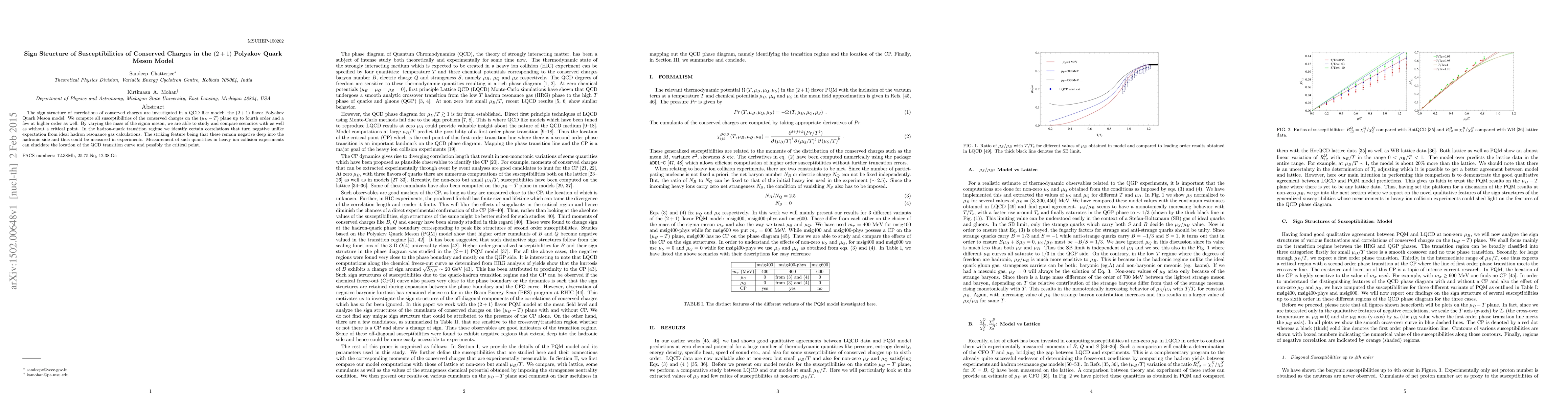The sign structure of correlations of conserved charges are investigated in a QCD like model: the (2+1) flavor Polyakov Quark Meson model. We compute all susceptibilities of the conserved charges on the $(\mu_{B}-T)$ plane up to fourth order and a few at higher order as well. By varying the mass of the sigma meson, we are able to study and compare scenarios with as well as without a critical point. In the hadron-quark transition regime we identify certain correlations that turn negative unlike expectation from ideal hadron resonance gas calculations. The striking feature being that these remain negative deep into the hadronic side and thus could be measured in experiments. Measurement of such quantities in heavy ion collision experiments can elucidate the location of the QCD transition curve and possibly the critical point.