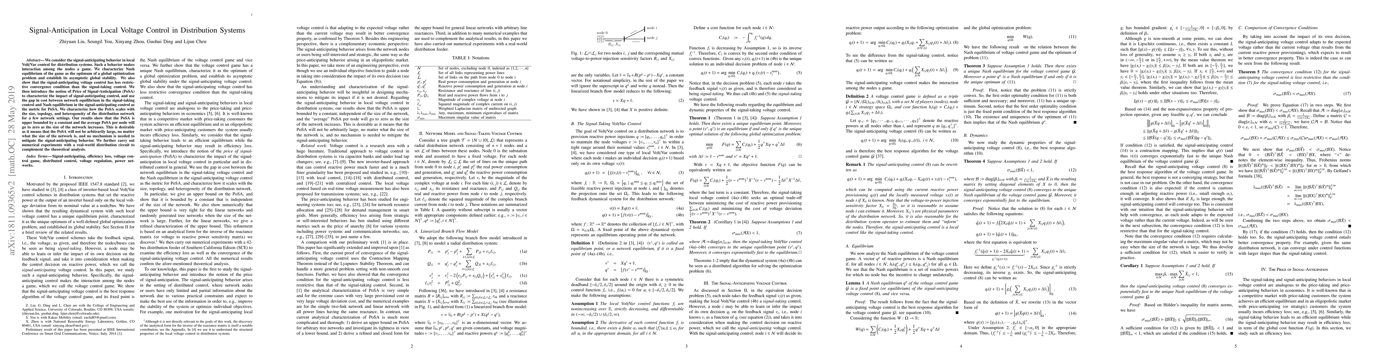 Researchers study signal-anticipation in local voltage control for distribution systems, finding that it has a finite impact on network efficiency, with the cost difference scaling with network size but not necessarily growing without bound.