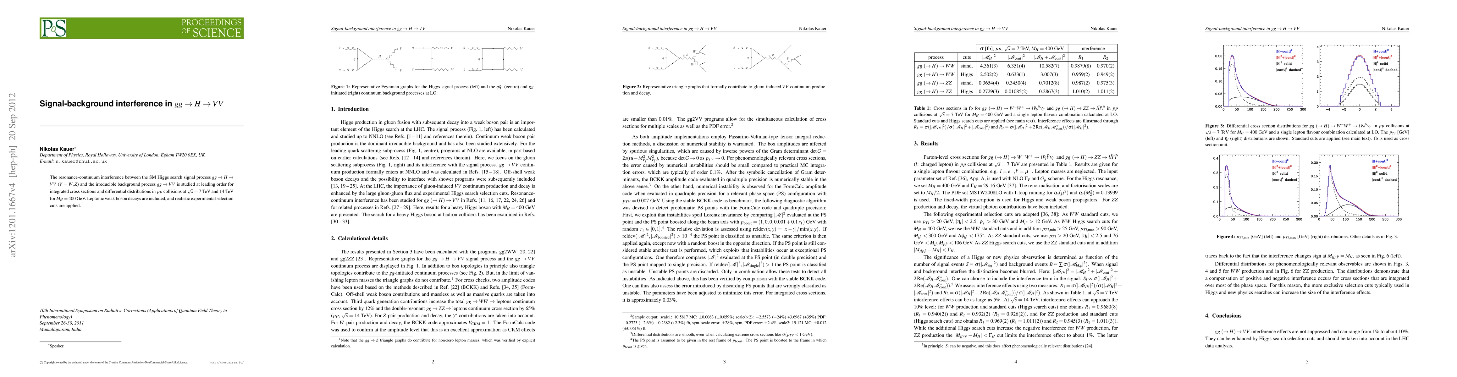The resonance-continuum interference between the SM Higgs search signal process gg --> H --> VV (V=W,Z) and the irreducible background process gg --> VV is studied at leading order for integrated cross sections and differential distributions in pp collisions at \sqrt{s}=7 TeV and 14 TeV for M_H=400 GeV. Leptonic weak boson decays are included, and realistic experimental selection cuts are applied.