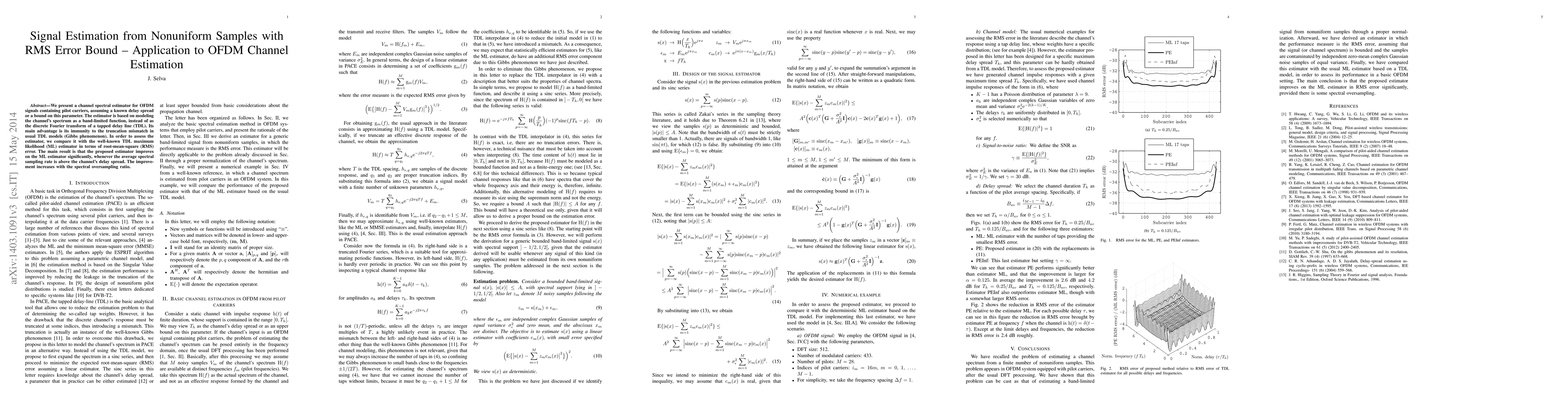 We present a channel spectral estimator for OFDM signals containing pilot carriers, assuming a known delay spread or a bound on this parameter. The estimator is based on modeling the channel's spectrum as a band-limited function, instead of as the discrete Fourier transform of a tapped delay line (TDL). Its main advantage is its immunity to the truncation mismatch in usual TDL models (Gibbs phenomenon). In order to assess the estimator, we compare it with the well-known TDL maximum likelihood (ML) estimator in terms of root-mean-square (RMS) error. The main result is that the proposed estimator improves on the ML estimator significantly, whenever the average spectral sampling rate is above the channel's delay spread. The improvement increases with the spectral oversampling ratio.