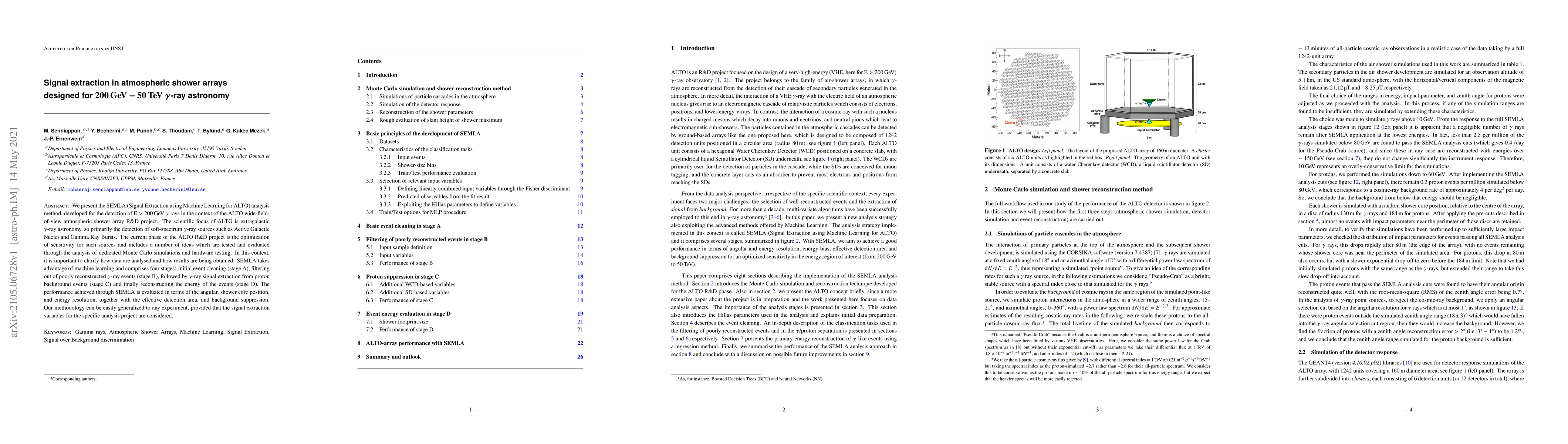 This paper introduces SEMLA, a machine learning-based method for extracting signals from $\rm E>200\,GeV$ $\gamma$ rays detected by the ALTO atmospheric shower array. SEMLA optimizes sensitivity for extragalactic $\gamma$-ray sources, evaluated through Monte Carlo simulations and hardware tests, and comprises four stages for event cleaning and signal extraction.