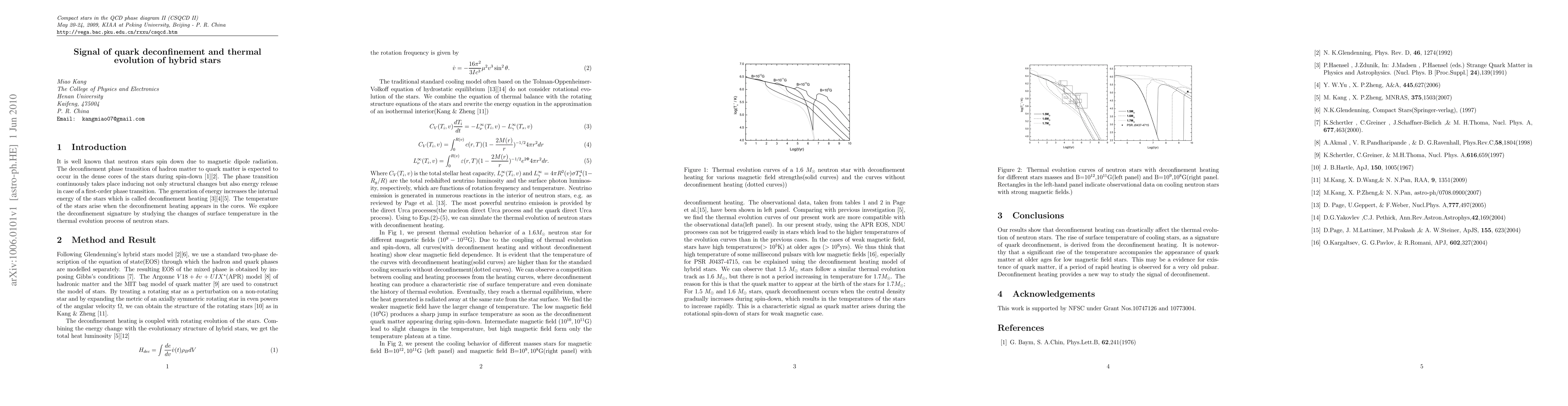 This paper investigates the deconfinement phase transition from hadron to quark matter in neutron stars, focusing on the associated heating and temperature changes. The study aims to identify the signature of this transition through surface temperature variations during the thermal evolution of hybrid stars.