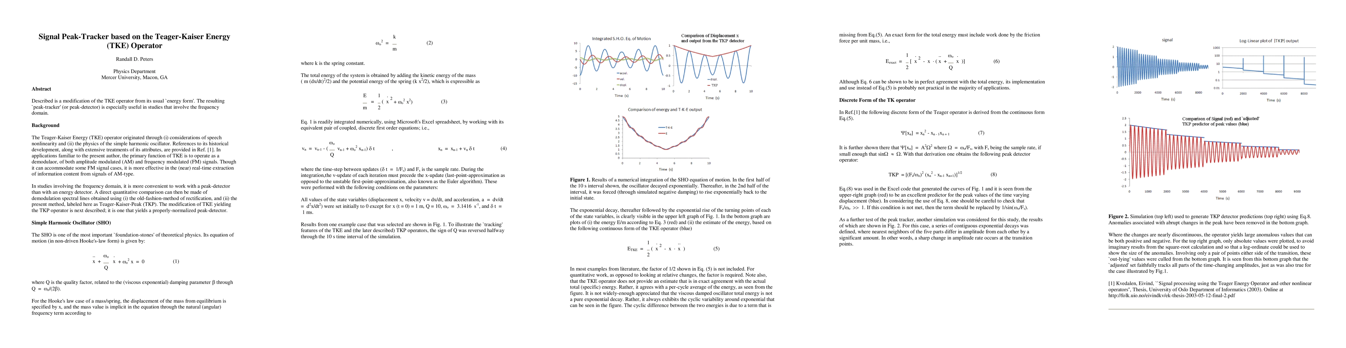 Researchers created a signal peak-tracker based on the Teager-Kaiser Energy operator to improve analysis in frequency domain studies. This modified tracker is particularly useful for detecting peaks in signals with the TKE operator's energy form.