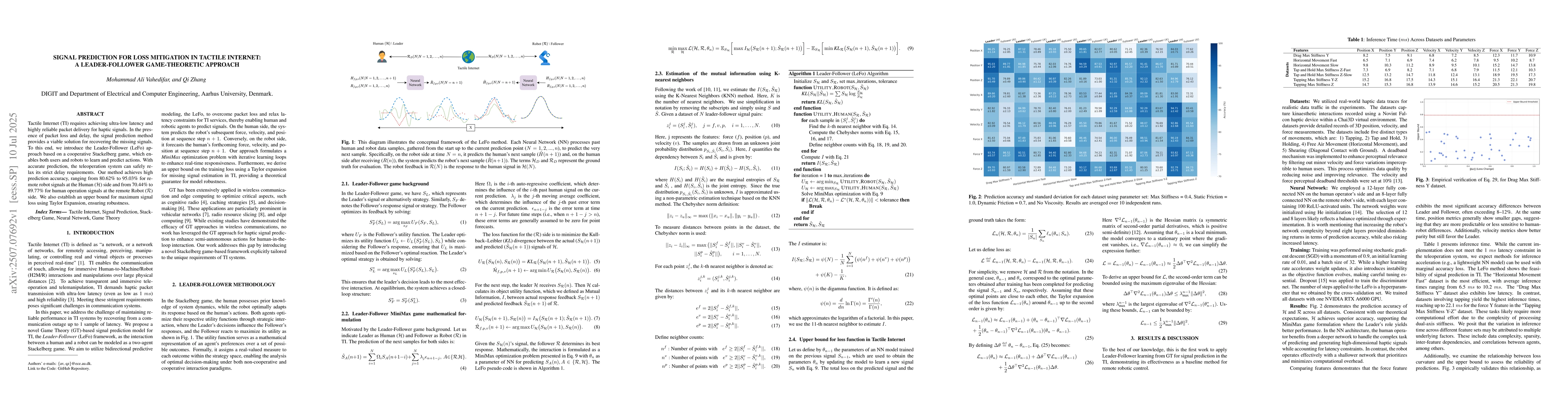 Tactile Internet (TI) requires achieving ultra-low latency and highly reliable packet delivery for haptic signals. In the presence of packet loss and delay, the signal prediction method provides a viable solution for recovering the missing signals. To this end, we introduce the Leader-Follower (LeFo) approach based on a cooperative Stackelberg game, which enables both users and robots to learn and predict actions. With accurate prediction, the teleoperation system can safely relax its strict delay requirements. Our method achieves high prediction accuracy, ranging from 80.62% to 95.03% for remote robot signals at the Human ($H$) side and from 70.44% to 89.77% for human operation signals at the remote Robot ($R$) side. We also establish an upper bound for maximum signal loss using Taylor Expansion, ensuring robustness.