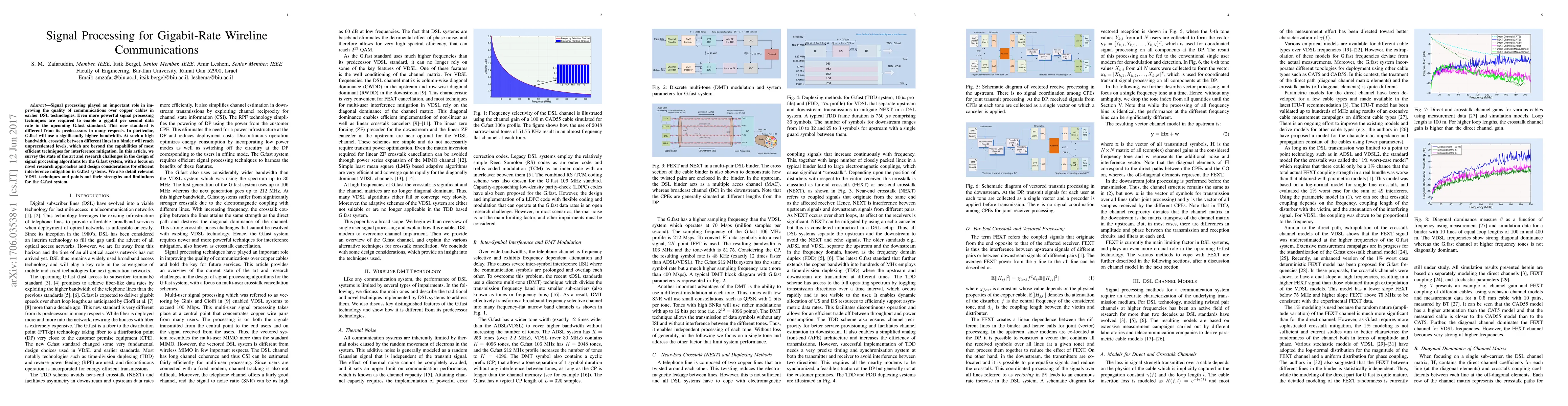 This paper surveys advanced signal processing techniques for the G.fast standard, which aims for gigabit-rate wireline communications, highlighting the challenges of unprecedented crosstalk interference and comparing it with VDSL methods to propose novel interference mitigation strategies.