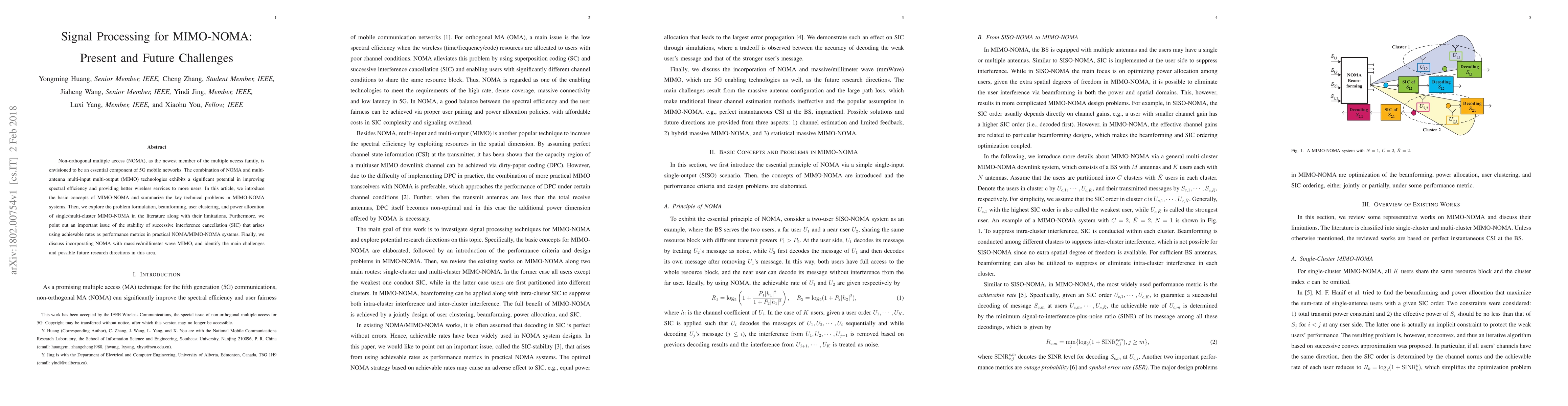 This paper reviews MIMO-NOMA technologies, highlighting their potential to enhance spectral efficiency in 5G networks. It discusses key technical challenges, including beamforming, user clustering, and power allocation, while also addressing the stability issues of successive interference cancellation. The paper concludes by exploring future research directions, particularly in integrating NOMA with massive/millimeter wave MIMO.